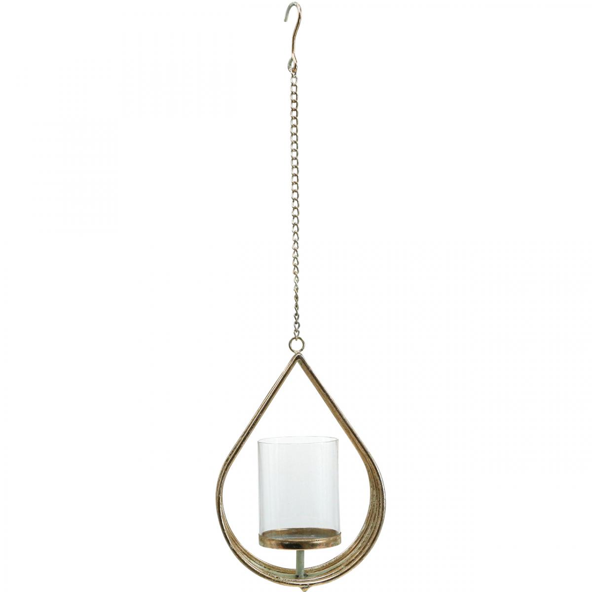 Lyhty riippuva kynttilänjalka metallinen kultainen kyynelpisara H22,5cm