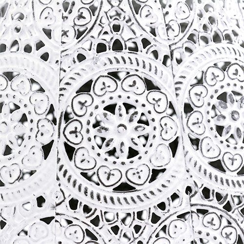 Itämainen dekadenssi kohtaa shabby chicin maalaismaisen viehätyksen: henkeäsalpaavan kaunis yhdistelmä, joka tekee tästä valkoisesta sipulimaisesta lyhdystä ainutlaatuisen katseenvangitsijan terassilla tai parvekkeella. Tyypillistä vintage-ilmettä varten kevytmetalli pestiin valkoiseksi ja varustettiin koristeellisilla, kukka-aiheisilla koristeilla ja kuvioilla, jotka samalla huokuvat 1001 yön tunnelmaa. Rei'itetyt elementit antavat sisälle asetetun kynttilän valon välkkyä kauniisti ja luovat näin lämpimän, ystävällisen tunnelman.Laterna muistuttaa muodoltaan itämaista lyhtyä ja sopii kokonsa ansiosta erityisen hyvin sisääntuloportaiden, puutarhapolkujen ja kukkapenkkien reunojen koristeeksi. Erikoisen tunnelman luomiseksi voit myös sijoittaa lyhdyn puutarhasi puiden kannoille tai Välimeren alueelle istutettujen vintage-muotoiltujen kukkaruukkujen väliin. Romanttisena pöydänkoristeena ruokapöydissä ja sohvapöydissä tai lipastoissa, lipastoissa ja ikkunalaudoilla lyhtymäinen lyhty tekee vaikutuksen ja kylvää huoneen tai terassin tai parvekkeen lämpimään valoon. Voit muuten käyttää tätä myös pimeänä vuodenaikana, sillä hienona joulukoristeena seisova lyhty näyttää Kristuksen lapselle tietä.