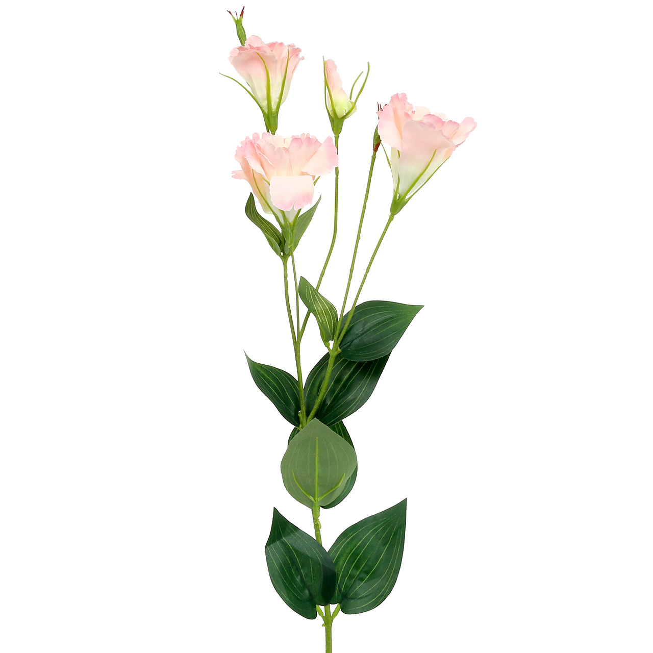 Keinotekoisen, vaaleanpunaisen Lisianthus-oksan pituus on noin 87,5 senttimetriä, ja yksittäisten kukkien koko on - nuppua lukuun ottamatta - noin 7,5-9 senttimetriä.