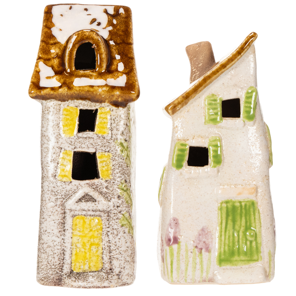 Yksinkertaisesti viihtyisää! Nämä maalaismaiset LED-valaistuksella varustetut keramiikkatalot tuovat kotiisi erityisen tunnelman. Olivatpa ne sitten olohuoneen pöydällä, makuuhuoneessa tai juhlavana ruokapöydän koristeena – lämmin valkoinen valo luo viihtyisän tunnelman minne ikinä sijoitatkin ne. Ja mikä parasta: saat kaksi rakkaudella käsinmaalattua taloa, joissa kummassakin on viehättäviä yksityiskohtia, jotka ilahduttavat silmää. Luonnonkeramiikan ja pehmeiden värien yhdistelmä sopii kauniisti yhteen erilaisten sisustustyylien, kuten maalaisromanttisen tai vintage-tyylin, kanssa. Täydellinen kaikille, jotka etsivät luonnollisempaa ja kodikkaampaa sisustusta. Rakastatko valon ja varjon vuorovaikutusta? Silloin nämä valoilla varustetut keramiikkatalot ovat ihanteellisia viihtyisän tunnelman luomiseen – todellinen kohokohta erityisesti viileämpinä kuukausina!