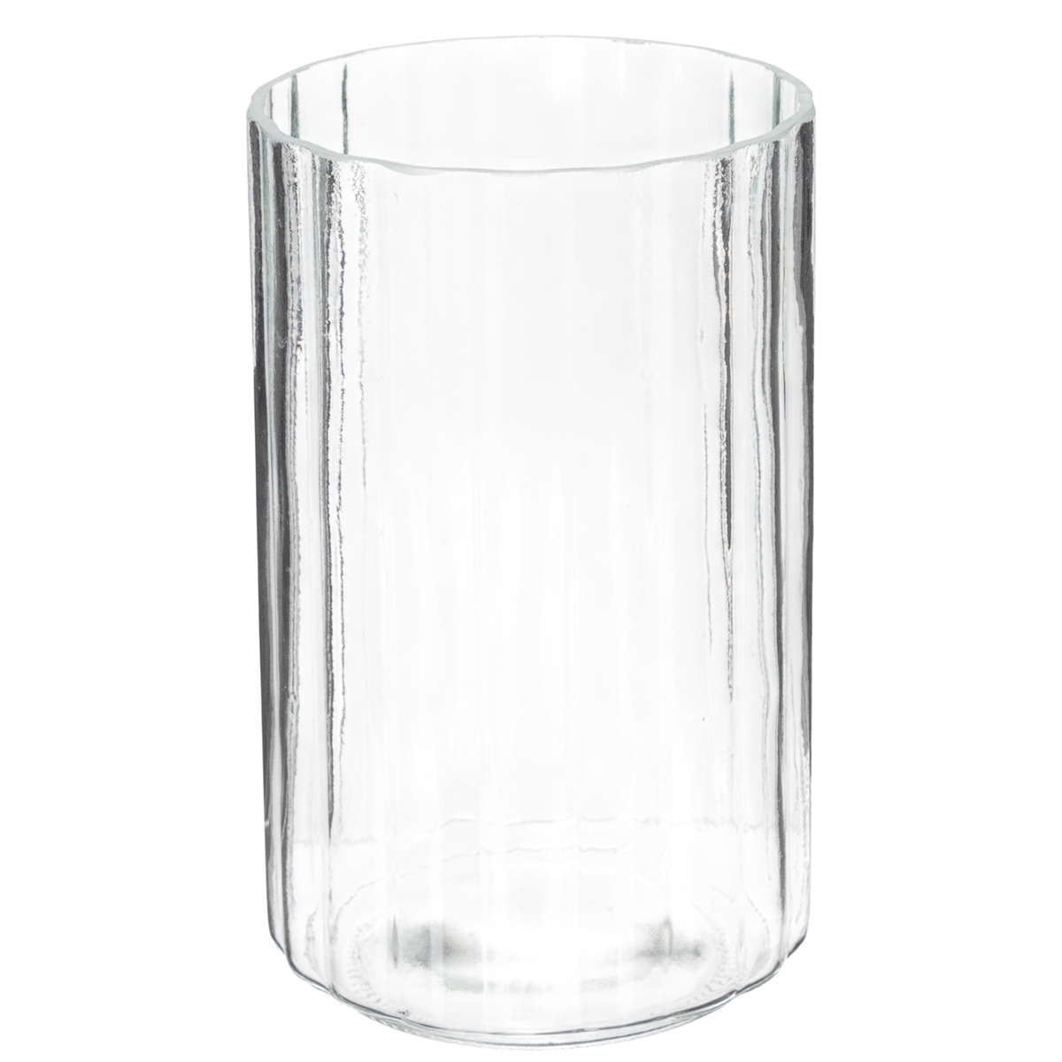 Läpinäkyvä lasinen maljakko raidallisella tekstuurilla – käytännöllinen ja elegantti