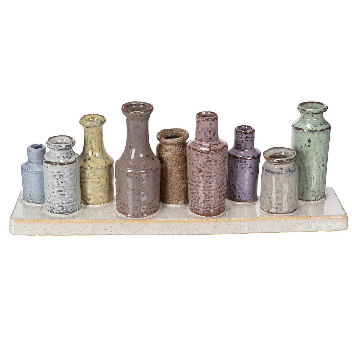 - 9 pientä, käsintehtyä keraamista maljakkoa yhteensopivissa väreissä