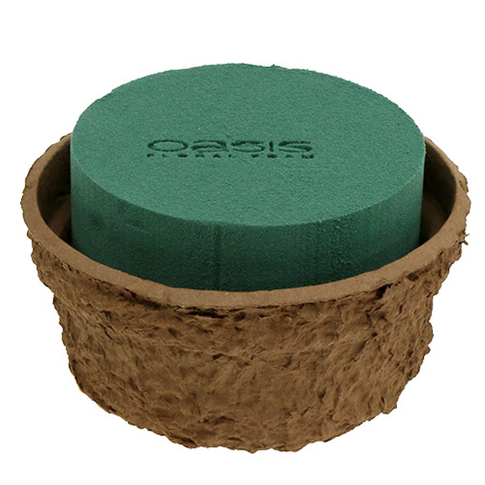OASIS®:n erittäin luonnollisen näköinen BIOLIT® plug-in-malja toimitetaan vihreällä, pyöreällä märkäpistokasvaahdolla kahden kappaleen sarjassa. Kulho on ehdoton valinta kaikille niille, jotka haluavat sisustaa kotinsa metsästä, puusta ja vastaavista muistuttavilla tuotteilla. Kuorta tai pähkinänkuorta muistuttava astia on valmistettu kierrätyspaperista ja turpeesta. Se toimii vesisäiliönä. Säiliö on täysin kompostoitavissa, kun se on silputtu. Tämä tekee siitä erittäin ympäristöystävällisen.