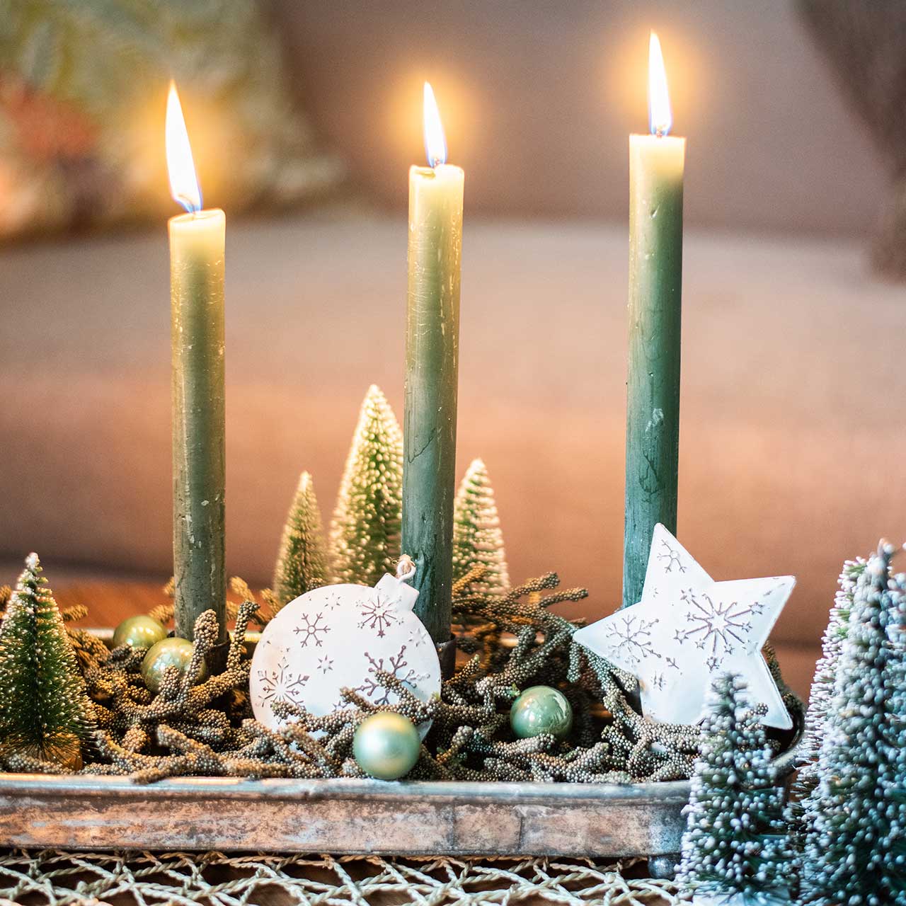 Tekomokkapalviköynnös voidaan kietoa koristerenkaan tai seppeleen avulla juhlavaksi adventtiseppeleeksi ripustettavaksi tai pöydälle. Myös Dekogestecke eingebundenoder järjestetty korkeaan maljakkoon, roikkuva mokkapalviköynnös tekee varsin maagisen!