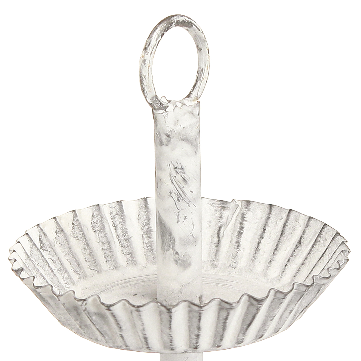 Tämä pieni kakkuteline on enemmän kuin vain porrastettu tarjotin. Yksityisistä kahvijuhlista ylellisiin juhlakoristeisiin ja tyylikkäisiin keittiökoristeisiin - tämä valkoiseksi pesty metallinen kakkuteline on todellinen katseenvangitsija. Valkoiset metallikuoret, joissa on keinotekoisia hankausjälkiä ja pienet pyöreät jalat antavat metallikoristeelle aidon vintage-ilmeen, joka on erityisen tehokas shabby chic -tyylissä.