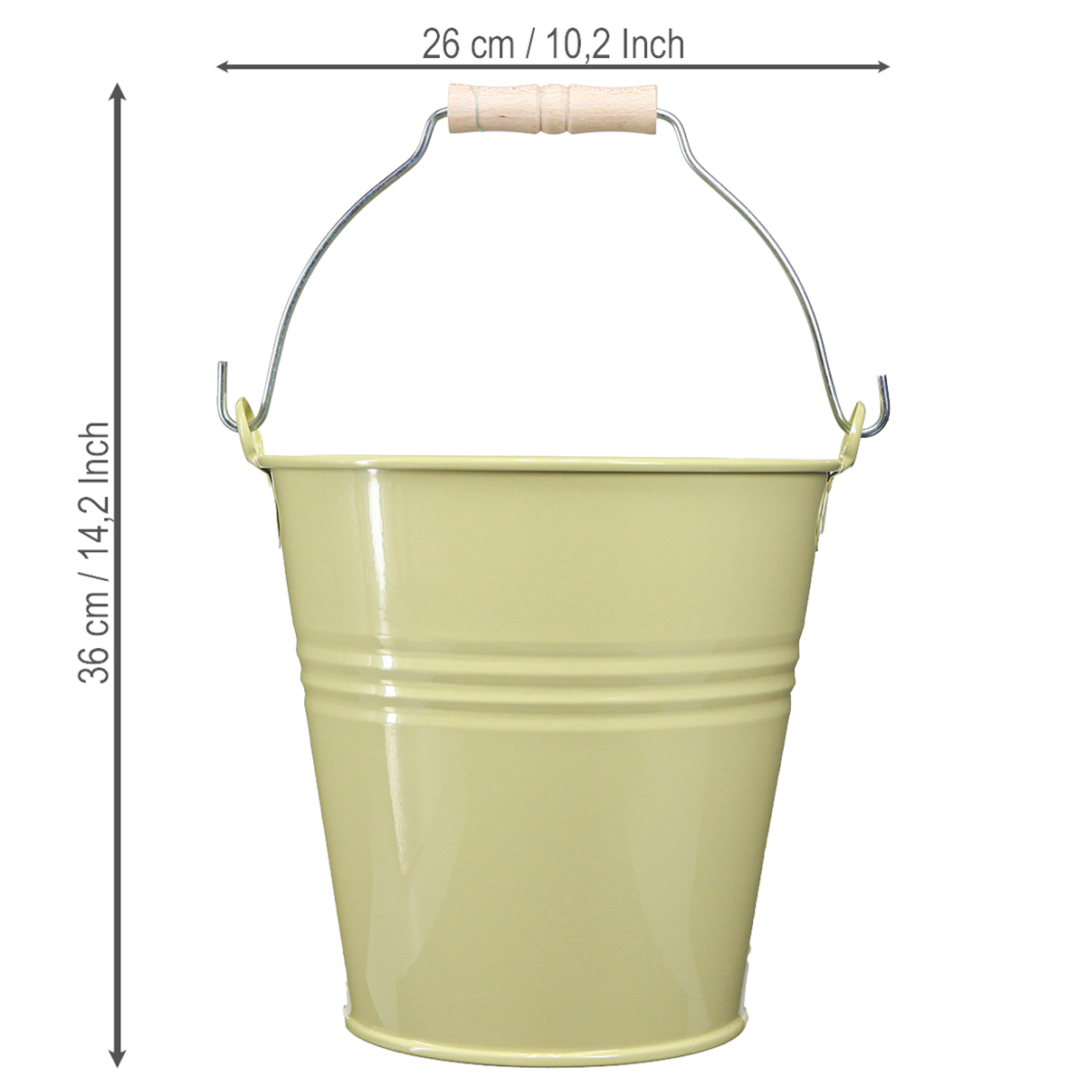 Metallinen ämpäri/kukkaruukku vihertävänkeltainen, 26x22,5x23cm, 6l