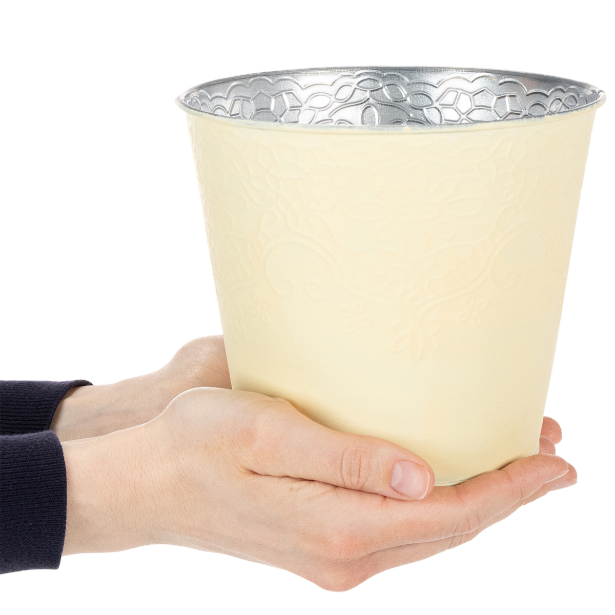 Metallinen istutusruukku, pastellinkeltainen, Ø16cm, korkeus 14cm