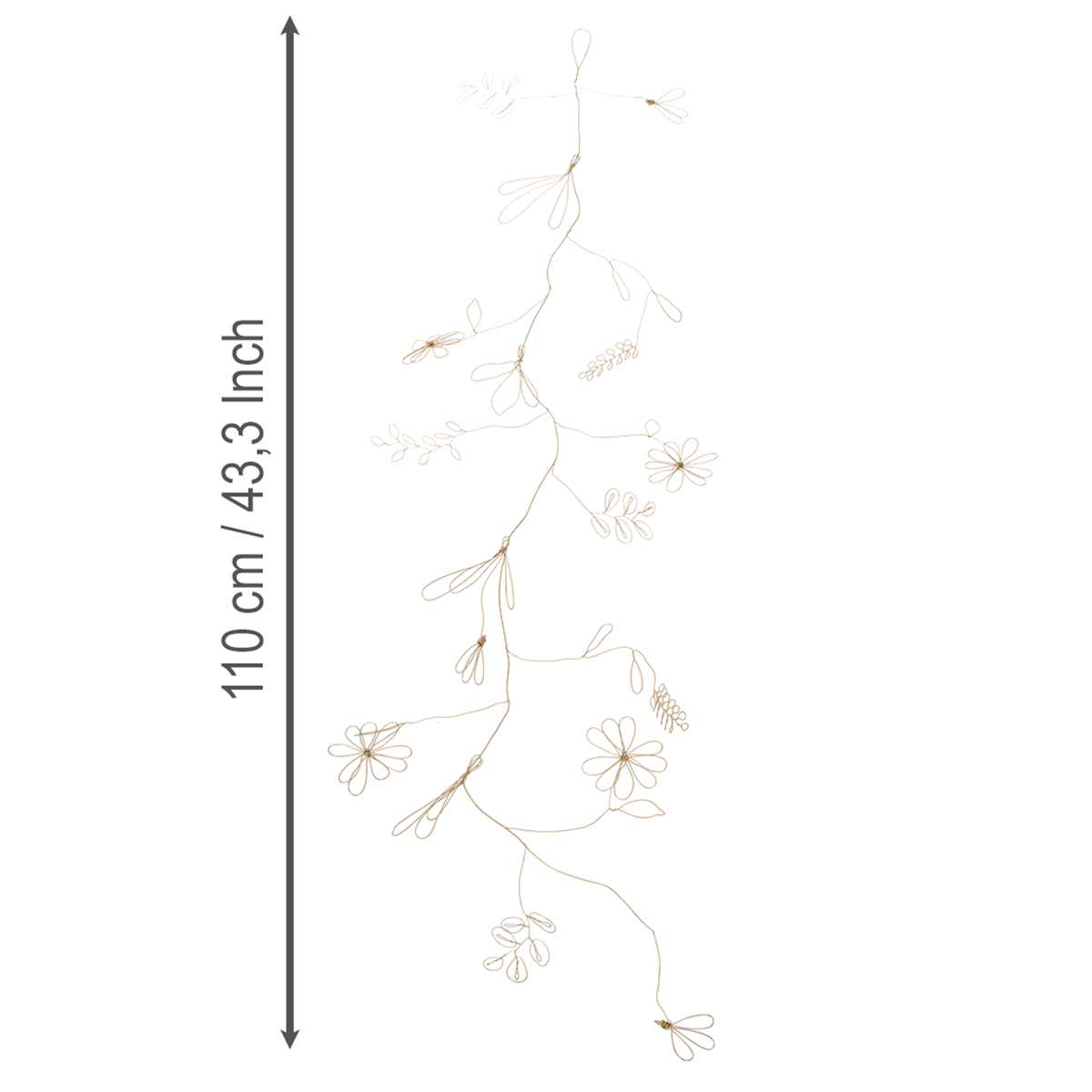 Metallinen kukkaseppele, lankaa kukkaseppeleeseen, kesäkoriste, seinäkoriste, kulta, 110 cm