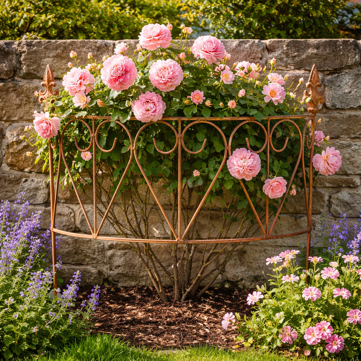 Kestävästä metallista valmistettu säleikkö sopii käytettäväksi katetuilla ulkoalueilla. Sen elegantti, vintage-ilme tekee siitä erityisen houkuttelevan puutarhaharrastajille, jotka arvostavat sekä tyyliä että käytännöllisyyttä. Muunna etupihasi, kukkapenkkisi tai parvekkeesi vihreäksi keitaaksi henkilökohtaisella tyylillä!