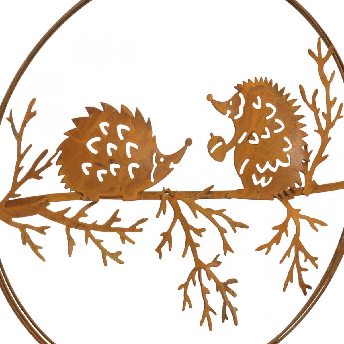 Tuotteen nimi: Metalliriipus, siili oksassa, syksykoristeet, koristesormus patina Ø15,5cm 3 kpl