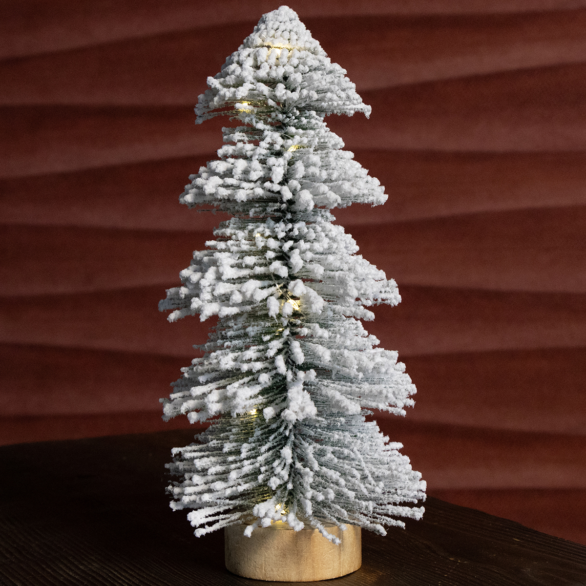 Noin 28 cm korkea minijoulukuusemme on ihanteellinen valinta kaikille, jotka haluavat luoda tunnelmallisia mutta tilaa säästäviä joulukoristeita. Lumiset oksat ja yksinkertainen muotoilu täydentävät täydellisesti sekä skandinaavista että modernia tyyliä – ajattomia ja viihtyisiä. Kahdeksan lämpimän valkoista LEDiä luovat miellyttävää, epäsuoraa valaistusta, joka luo viihtyisiä hetkiä. Tukeva puinen jalusta antaa kuuselle vakautta pöydällä ja peittää huomaamattomasti paristolokeron, jolloin ärsyttävät johdot poistuvat näkyvistä. Koristeellinen hyllyllä, kohokohta toimistossa tai tervetulotoivotuksena eteisessä – mahdollisuudet ovat rajattomat!