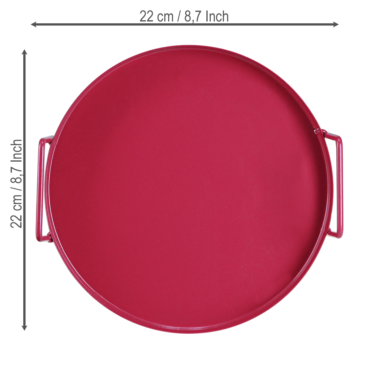 Tämä pyöreä, eloisanpunainen metallitarjotin, jonka halkaisija on 22 cm, ei ole vain todellinen katseenvangitsija, vaan myös poikkeuksellisen käytännöllinen. Mattapintaiset kahvat takaavat tukevan otteen ja tekevät tarjottimesta sekä kätevän että käytännöllisen. Halusitpa sitten tarjoilla tyylikkäästi juomia ja välipaloja vieraillesi tai esitellä suosikkikasvejasi, tämä punainen tarjotin tekee aina upean vaikutuksen. Kestävä metallipinta on helppo puhdistaa ja se on erittäin kestävä – yksinkertaisesti luotettava kumppani joka tilanteessa.