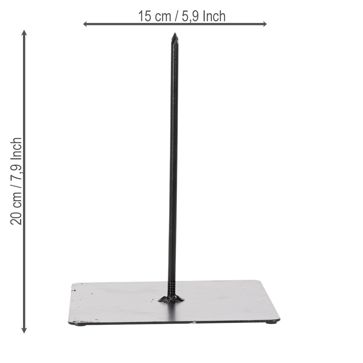 Tämä monitoiminen seppeleteline on todellinen kohokohta kaikille, jotka arvostavat harkittua ja viehättävää muotoilua. 20 cm korkea se tarjoaa täydellisen tasapainon käytännöllisyyden ja tyylikkään läsnäolon välillä. Ohut metallitanko lävistää vaivattomasti seppeleet tai asettelee kuivakukkia varmistaen tukevan pidon. Halusitpa sitten esitellä pieniä pöytäseppeleitä, kukka-asetelmia tai kausikoristeita, tämä teline herättää ideasi eloon. Vakaa neliönmuotoinen jalusta tarjoaa tukevan jalansijan millä tahansa pinnalla, sekä sisällä että ulkona. Korkealaatuinen työnjälki ja hillitty musta estetiikka mahdollistavat loputtomat yhdistelmät – yksinkertaisista luonnonmateriaaleista ylellisiin kukka-asetelmiin. Erityisen monipuolinen yksityiskohta: minimalistisen muotoilunsa ansiosta teline sulautuu saumattomasti hää- tai tapahtumakoristeluun peittämättä kuitenkaan pääsisustuselementtiä. Yksinkertaisesti upea yhdistettynä valkoisiin pöytäliinoihin tai kultaisiin aterimiin!