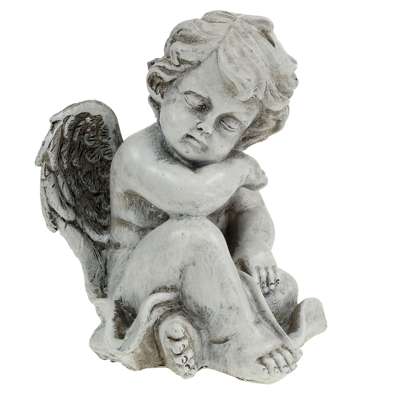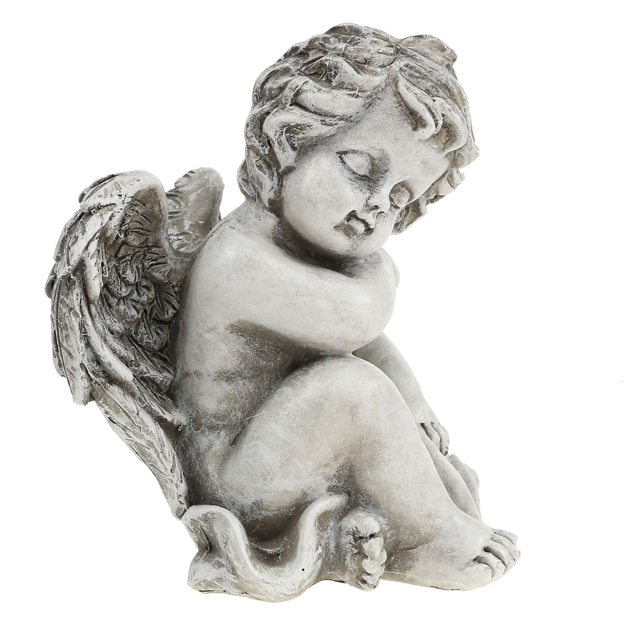 Enkeliveistos on valmistettu korkealaatuisesta säänkestävästä valukivestä, joka tunnetaan myös nimellä polyresiini. Valkoinen pesu ja hienovarainen materiaalin kuluminen antavat muistohahmolle antiikkisen ilmeen, joka sopii hyvin jaloon hautakoristeluun - olipa kyseessä sitten hautajaistilaisuus, Totensonnipäivä tai Pyhäinpäivä.