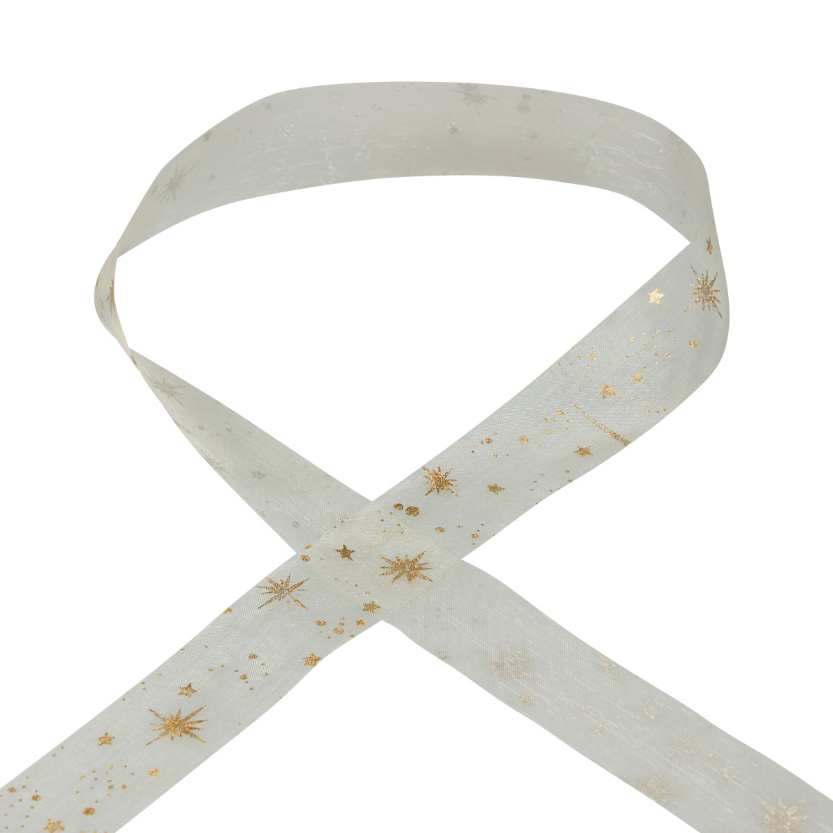 Valkoisesta organzasta ja kultaisilla tähdillä tehty koristenauha jouluksi tulee noin 25 millimetrin leveänä muovikelalle käärittynä. Organzanauhan kokonaispituus on noin 25 metriä.