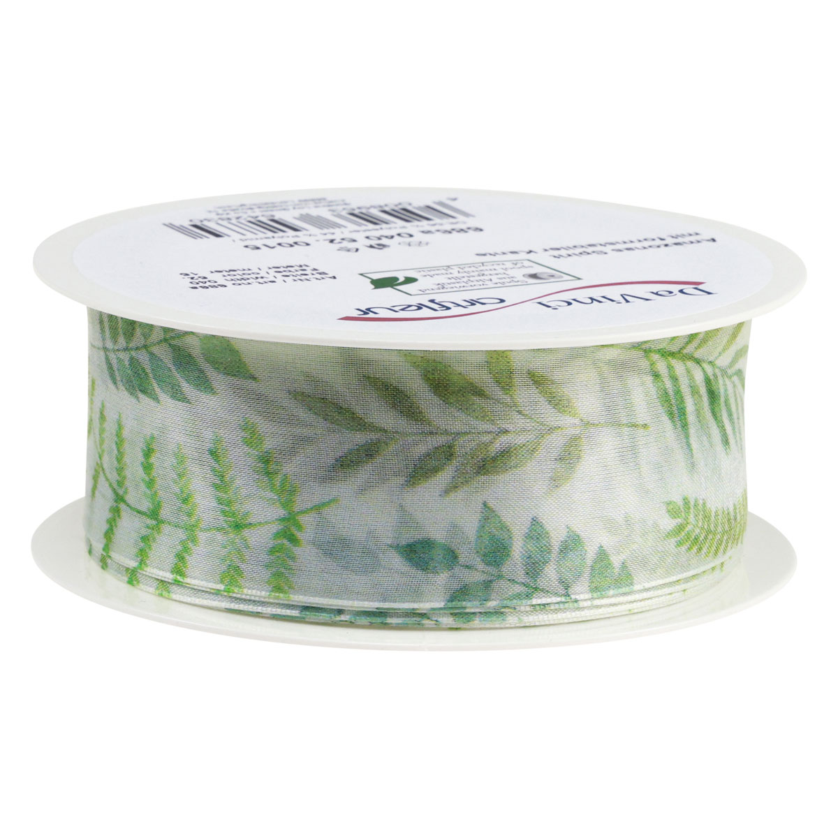 Organza nauha sifonki nauha vihreitä lehtiä lonkeroita 40mm 15m