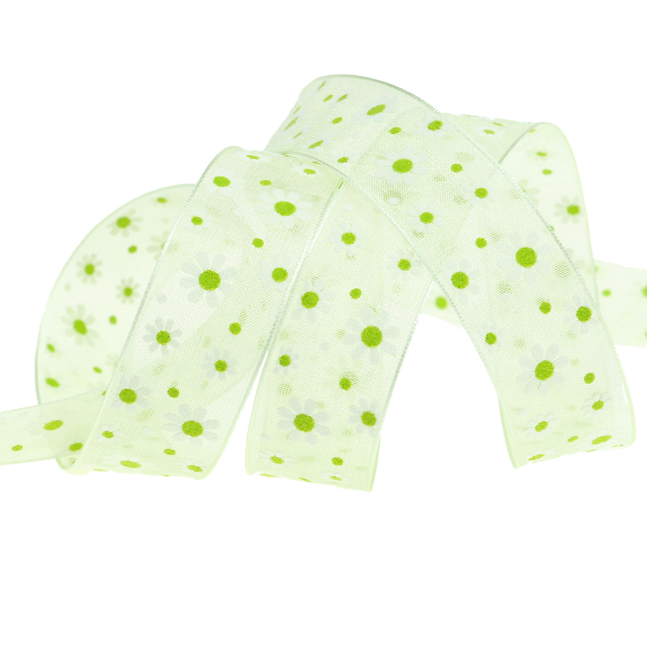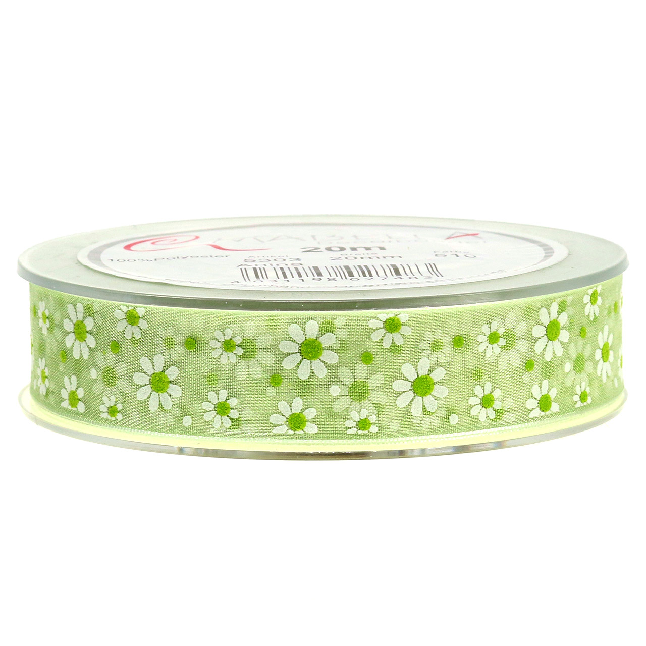 Tuotteen nimi: Organza nauha vihreä kukilla 20mm 20m