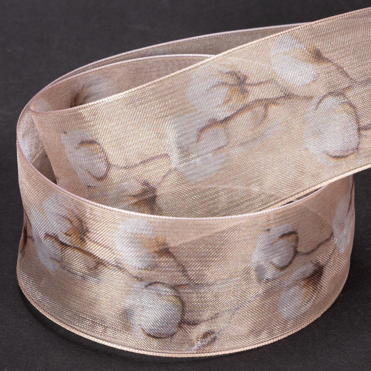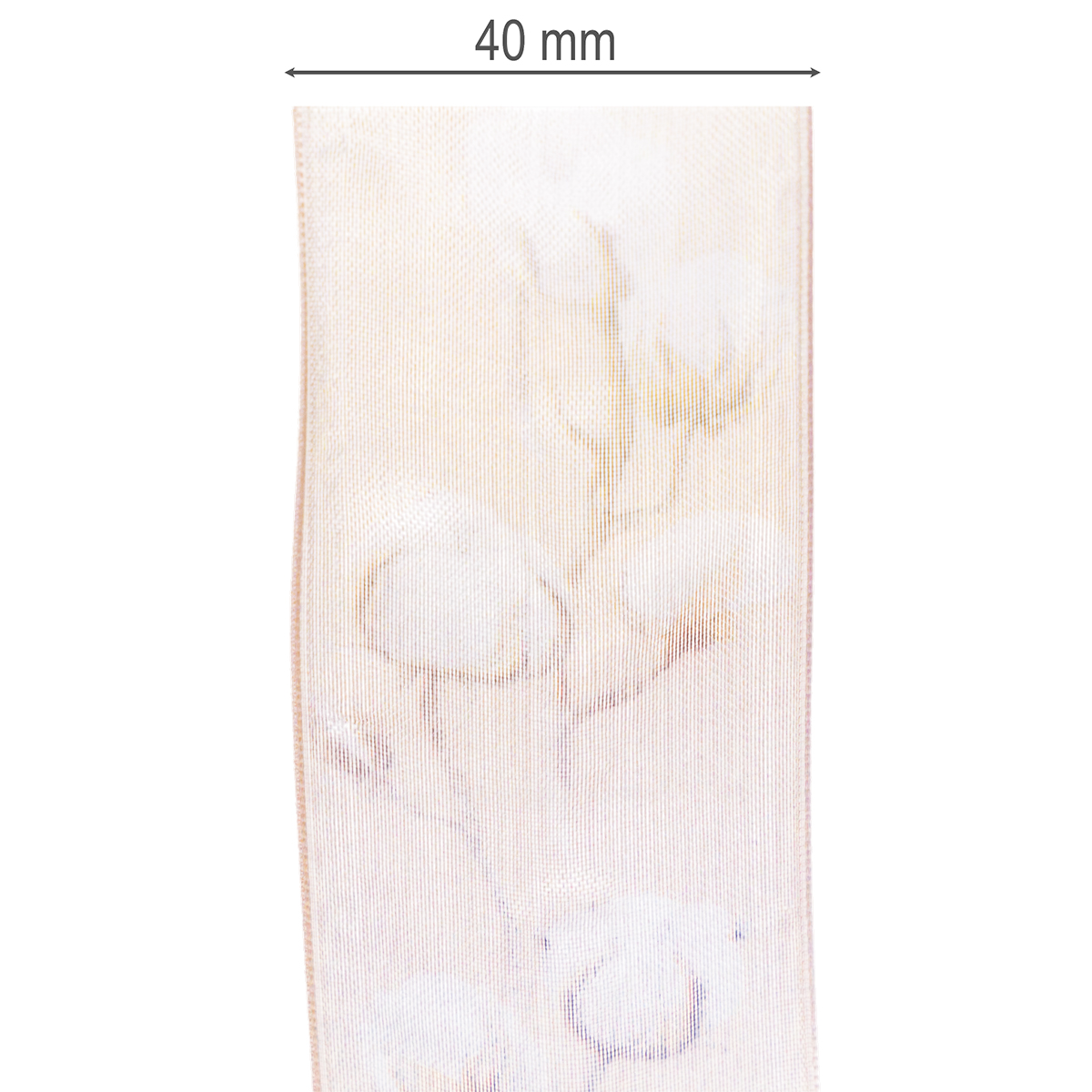 Organzanauha puuvillakukilla, koristenauha, pinkki, 40 mm leveä, 15 m pitkä