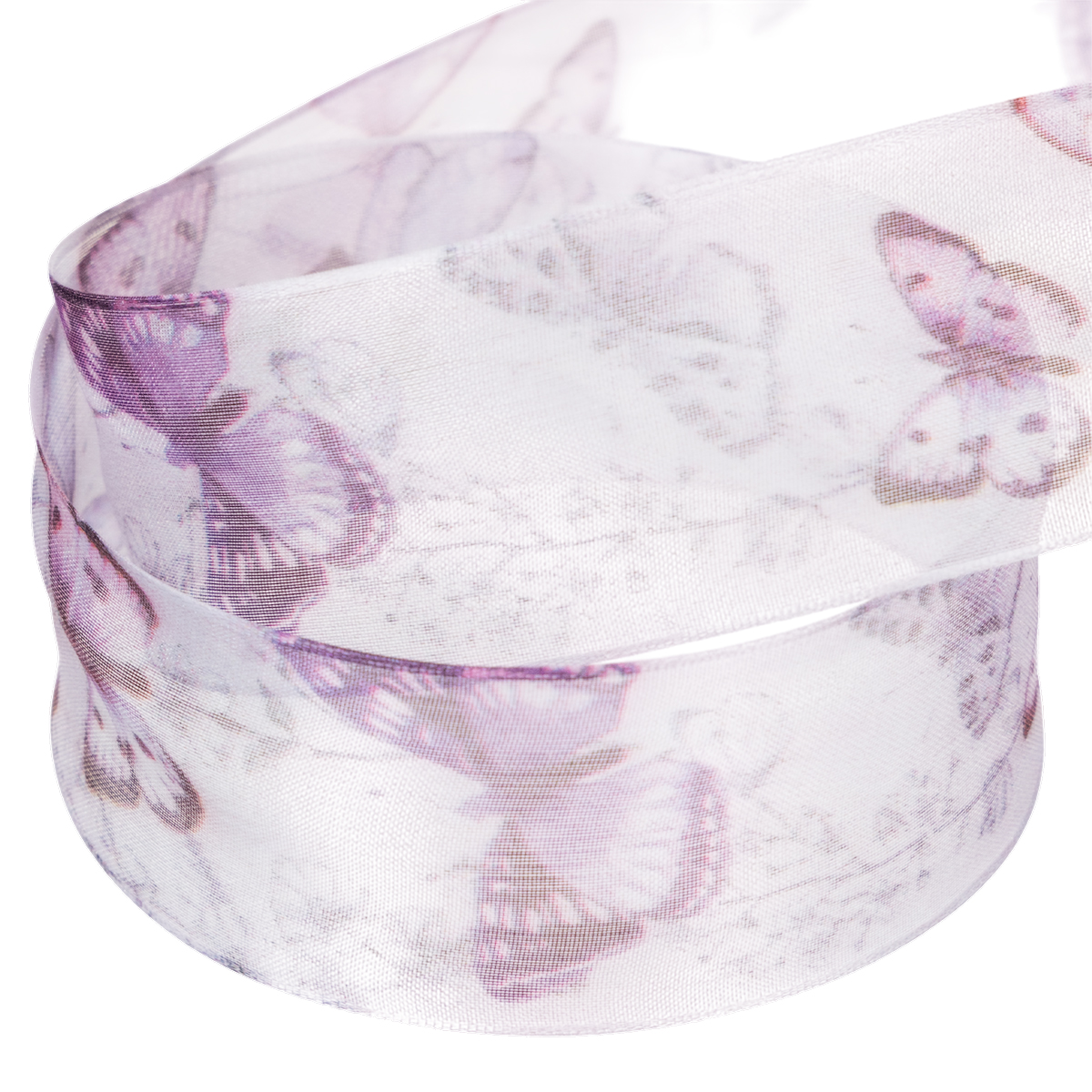 Tuotteen nimi: Organzanauha, sifonkinauha, perhoset, violetti, 40 mm, 18 m