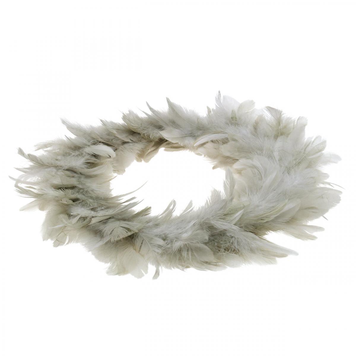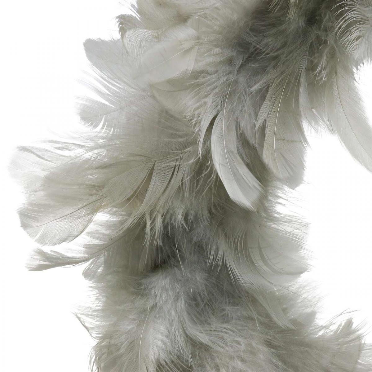 Vaaleanharmaa höyhenseppele tuo pörröistä ylellisyyttä pääsiäiskoristeeseesi! Tutustu aitojen höyhenten luonnolliseen kauneuteen: Luonnon höyhenet sidottiin tiukasti yhteen tukevasta muovista valmistettuun renkaaseen tätä kevätkoristetta varten.