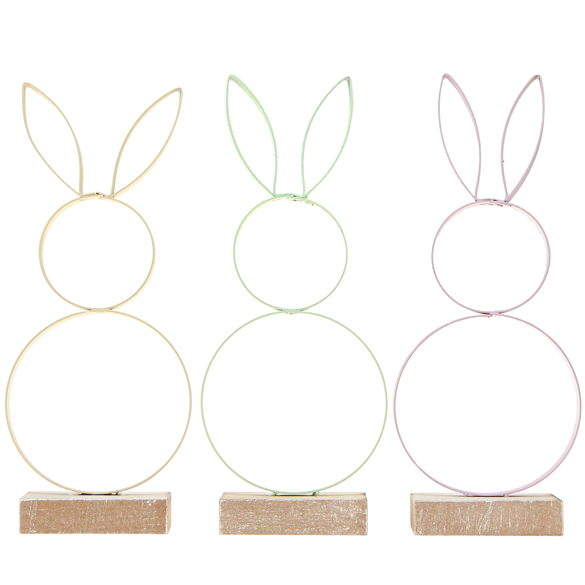 Tuotteen nimi: Pääsiäispupu Koriste metalli Puu Keltainen Minttu Pinkki H21cm 3 Kpl