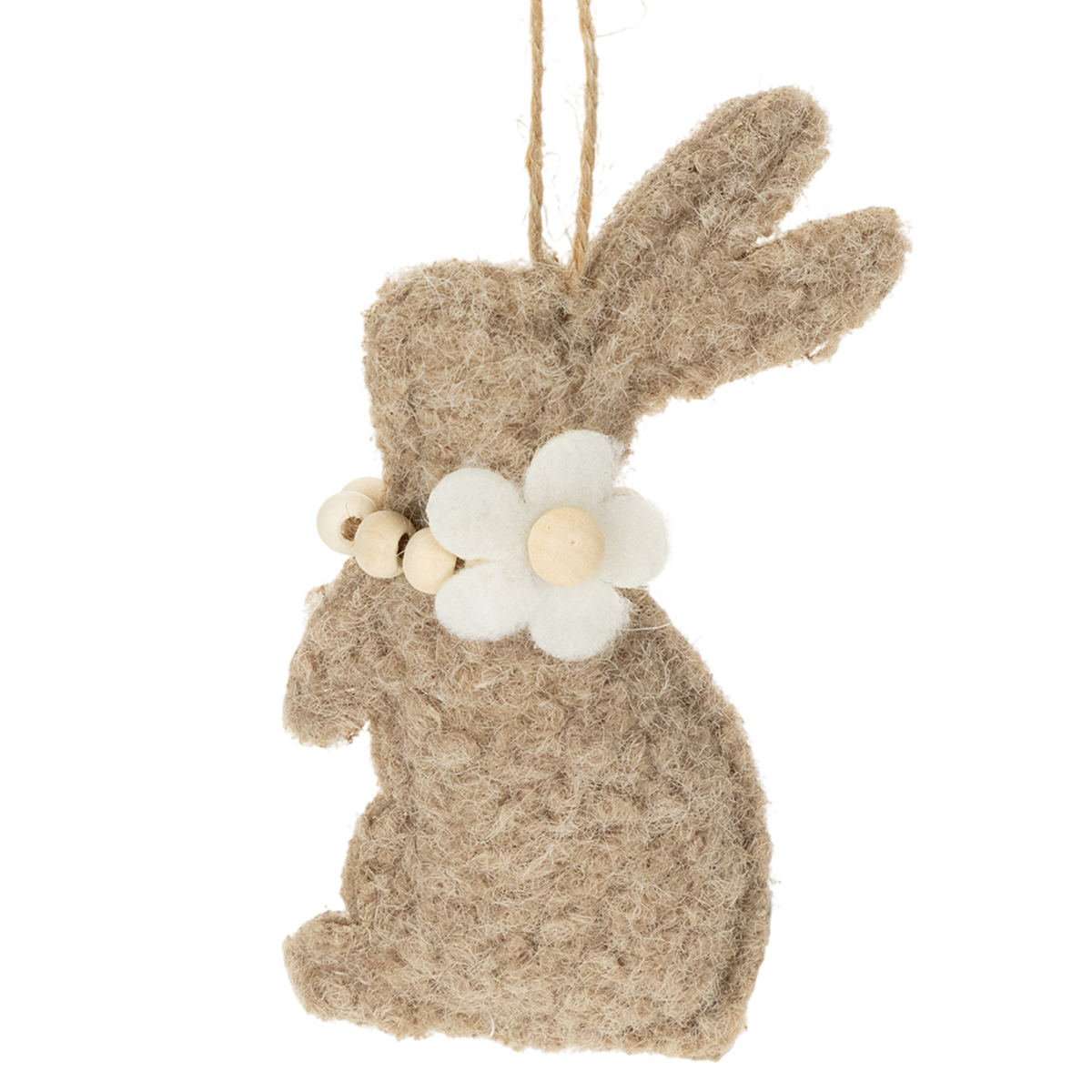 Tämä korkealaatuisesta huovasta valmistettu pääsiäispupun roikkuva koriste on paitsi koristeellinen, myös ihanan monipuolinen. Jokainen pupu on koristeltu herkillä yksityiskohdilla, kuten filigraanisella kukalla kaulassaan. Luonnolliset beigen ja kerman sävyt voidaan kauniisti yhdistää muihin koriste-elementteihin, kirkkaista pääsiäismunista tuoreisiin vihreisiin kasveihin.