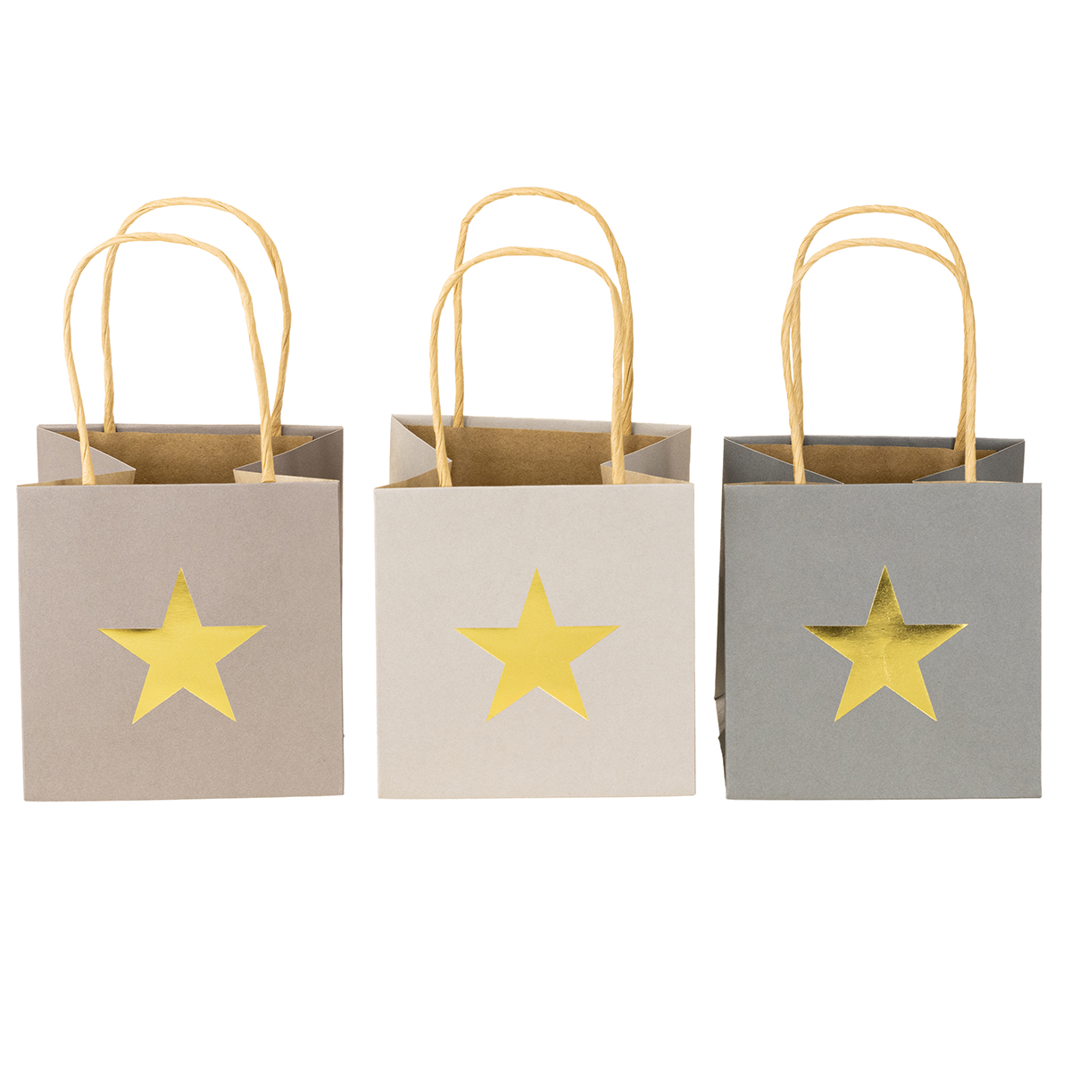 Tuotteen nimi: Paperikassit tähdellä ja kahvalla harmaa lajitelma 10,5×10,5cm 9kpl