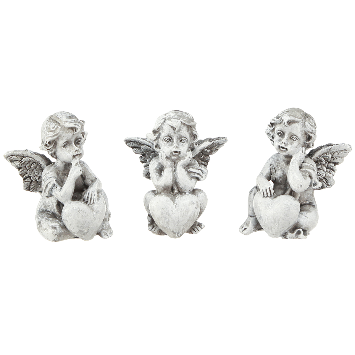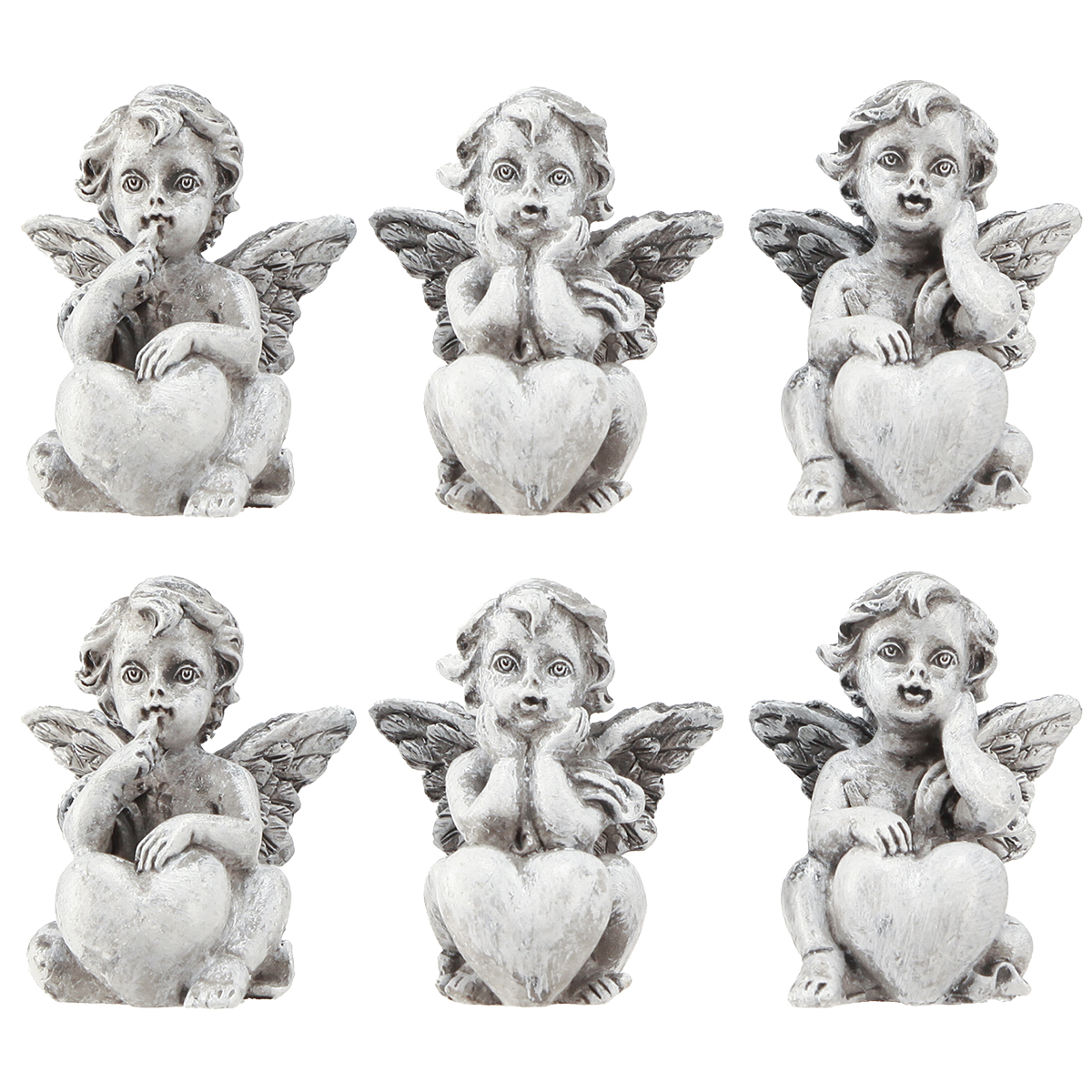 Tuotteen nimi: Pieni enkeli sydänhautakoristeella figuuri harmaa K5,5cm 6 kpl