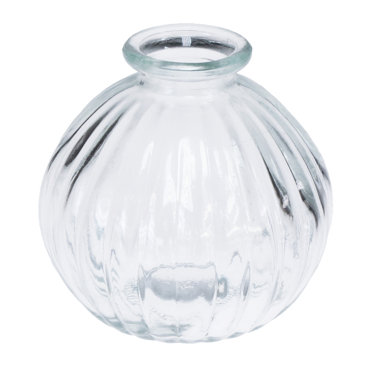Pyöreä, sipulimainen muoto ja klassiset urat tekevät lasimaljakosta paitsi upean lasikoristeen, myös trendikkään elementin pöytäkoristeeksi.