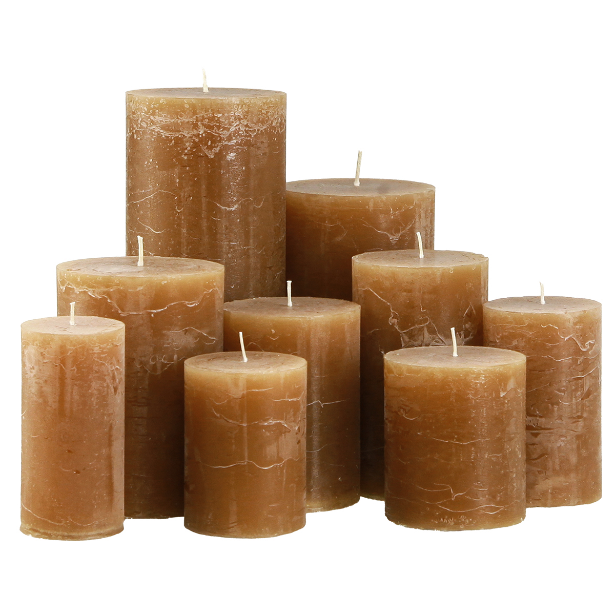 Tutustu laadukkaisiin, yksivärisiin pylväikynttilöihimme lämpimän karamellivärin sävyissä, jotka antavat asuntoosi kodikkaan ja tyylikkään tunnelman. Olipa kyseessä juhlatilaisuus, rento ilta tai koriste-elementti - nämä kynttilät ovat todellinen katseenvangitsija.