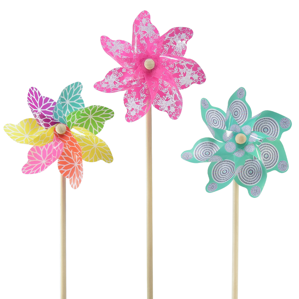 Pinwheel pink turkoosi värikäs kesäkoristelu Ø15cm K48cm 3kpl