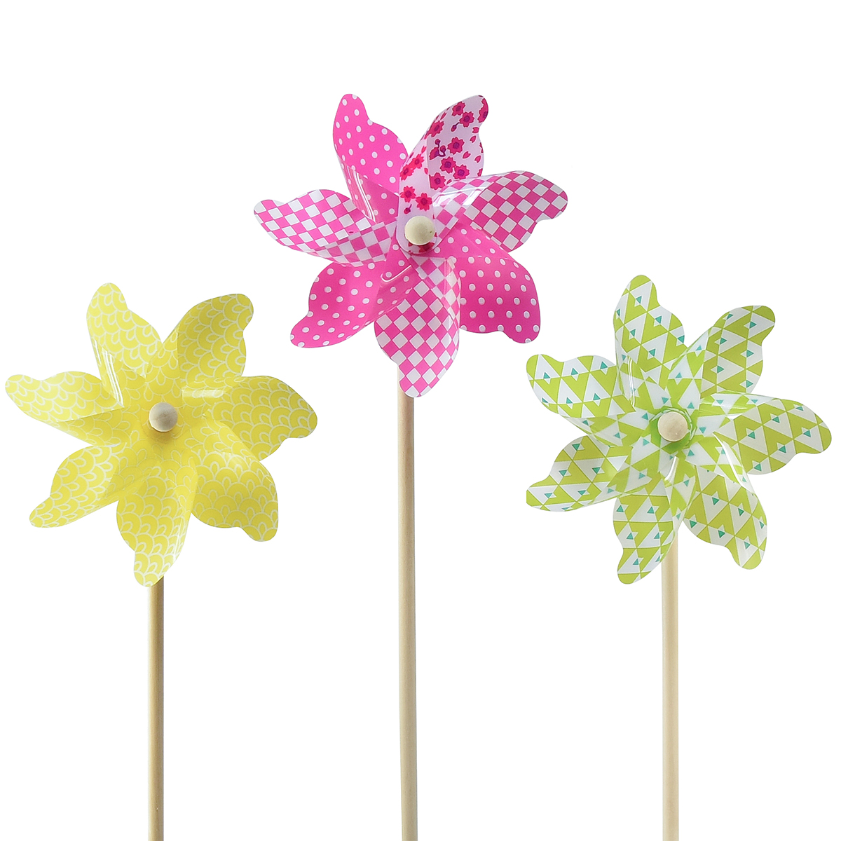 Tuotteen nimi: Pinwheel Pinwheel Keltainen Vihreä Tuulimyllyparvekkeen koristelu Ø15cm 3kpl