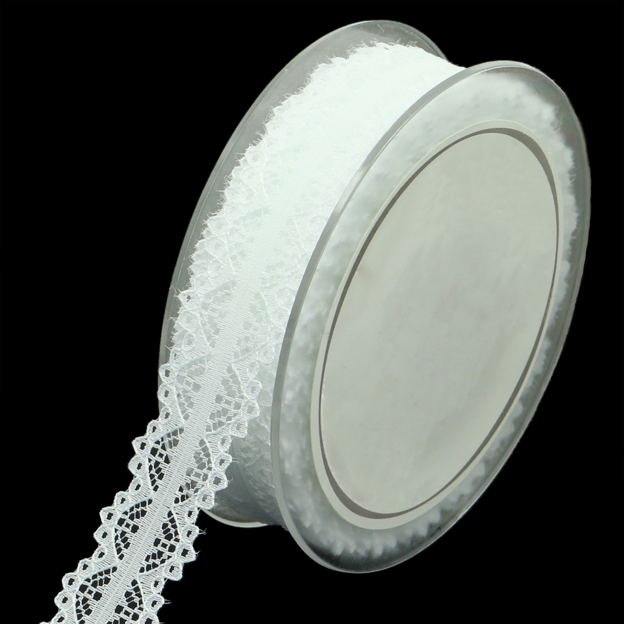 meille korkealaatuista polyesteriä, on noin 26 millimetriä leveä ja noin 20 metriä pitkä. Saat koristeellisesta pitsistä valmistetun koristenauhan muovikelalla, johon se on pujotettu pienellä helmineulalla.
