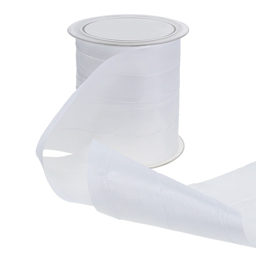 Valkoinen pöytänauha "Crash" on rullattu muovikelalle ja sen pituus on noin 15 metriä ja leveys noin 100 millimetriä. Jos liimaat nauhaan esimerkiksi pieniä valkoisia helmiä, voit tehdä morsiamelle myös kauniita rannekoruja.
