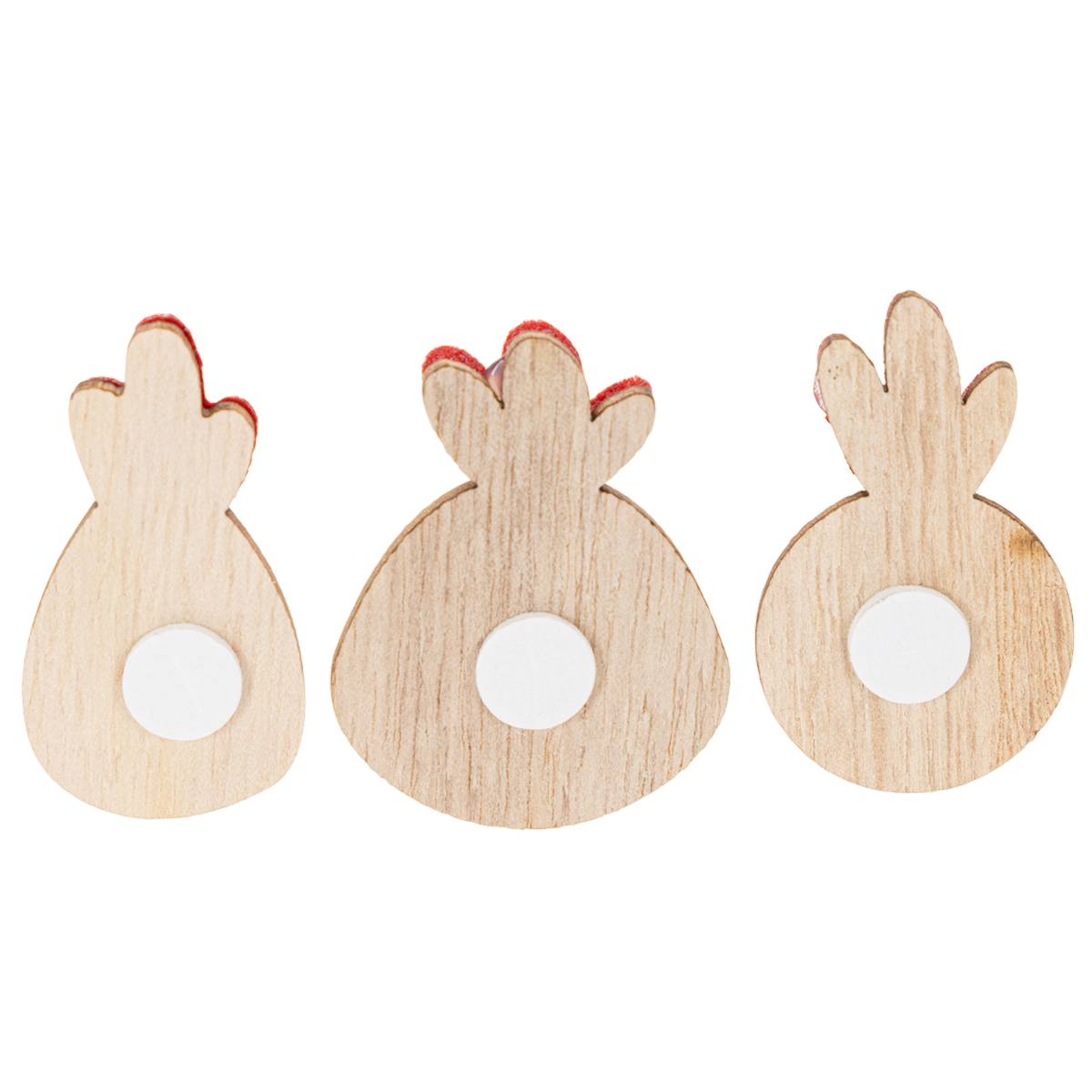 Cock-a-doodle-doo! Kuuletko sinäkin kukon laulavan varhain aamulla? Sitten pääset kevään tunnelmaan erityisesti tällä pääsiäisen hajottajakoristeella. Viehättävät puiset hahmot koostuvat kukon päästä, jonka erityispiirteitä, kuten punaista kukkakammiota, nokkaa ja punaista kurkkuläppää, on korostettu huopakuvioilla. Kaksi söpöä silmää täydentää muotoilun. Takapuolella on liimapiste, jolla voit liimata koristeellisen kukon ihanteellisesti myös erilaisille pinnoille.
