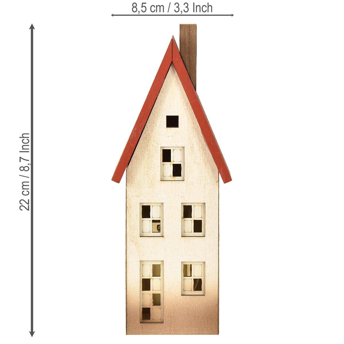 Korosta joulupöytäsi koristelua puumajallamme, punakattoisella valomajalla. Tämä lumoava valomaja maalaismaisella, luonnollisella ulkonäöllään tuo tunnelmaa kotiisi. Korkealaatuisesta, liekkikäsitellystä luonnonpuusta valmistettu ja punaisella katolla varustettu valomaja ilmentää ajatonta maalaistyyliä ja tuo samalla juhlavan säväyksen mihin tahansa huoneeseen. Kompaktien mittojensa (noin 8,5 x 6,5 x 22 cm) ansiosta valomaja sopii vaivattomasti takkaan ja ikkunalaudalle sekä toimii kohokohtana juhlavasti koristellulla ruokapöydällä. Jouluinen muotoilu tekee siitä myös erinomaisen valinnan sesongin sisustukseen – tunnelmallisista hyllykoristeluista juhlavan tunnelman luomiseen eteiseen. Kaksi AAA-paristoa (eivät sisälly toimitukseen) ja paristolokero takana takaavat joustavan ja turvallisen käytön missä tahansa kodissasi.
