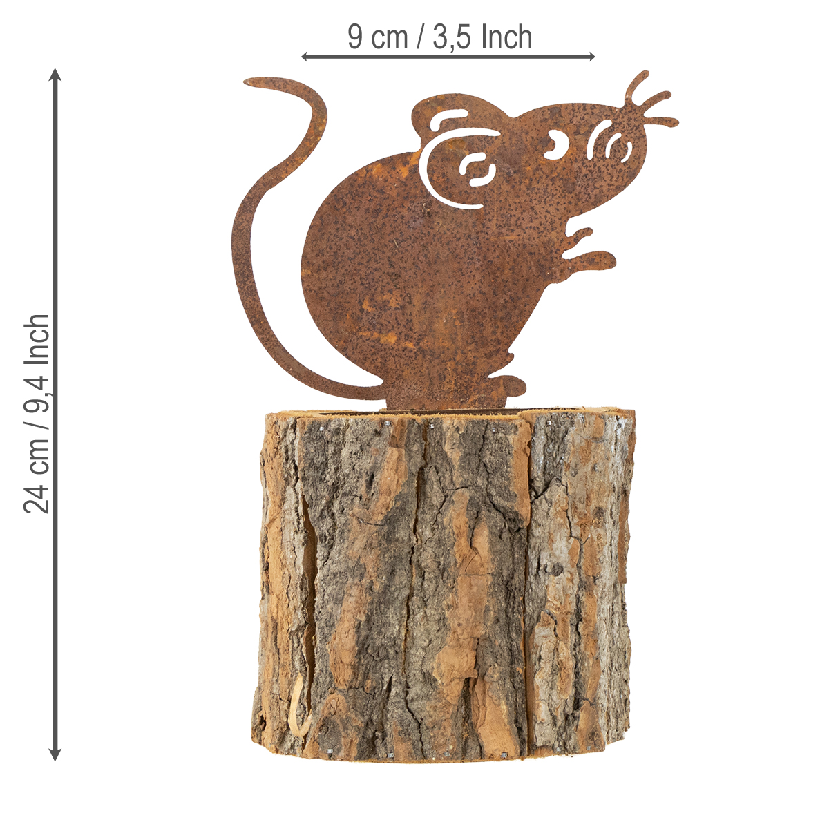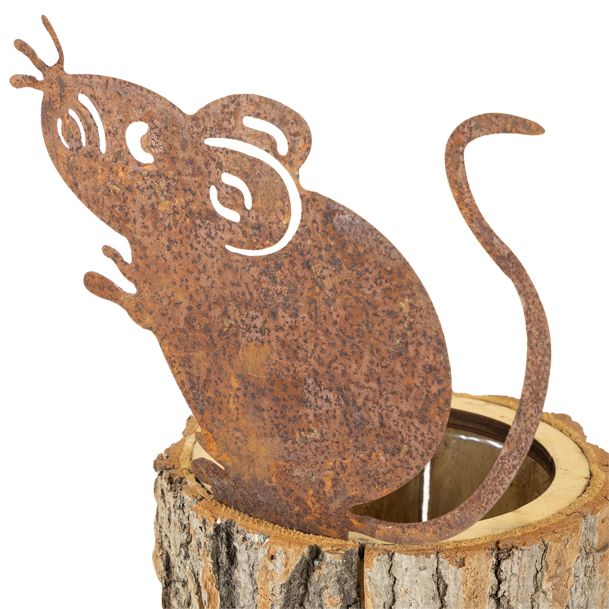 Tuotteen nimi: Puinen kukkaruukku, kuori ja hiiri, ruoste, korkeus 24 cm