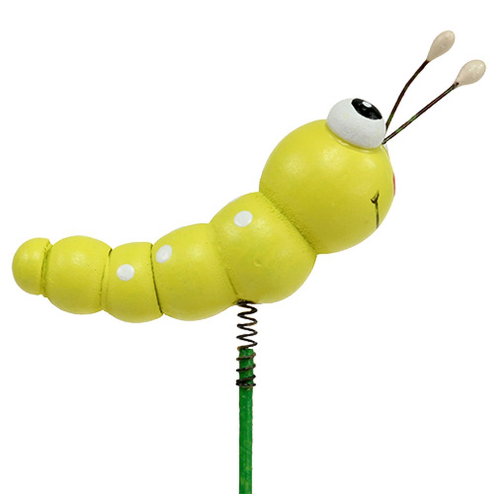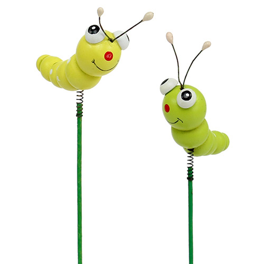 Puinen toukka tikussa vihreä, keltainen 8cm 24 kpl