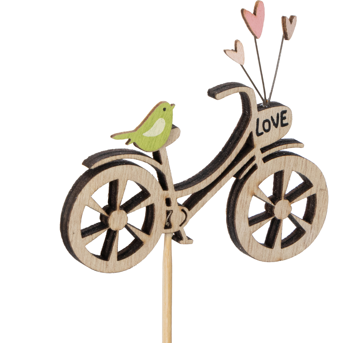 Etsitkö erityistä koristetta tuomaan kevään kotiisi? Nämä polkupyöräaiheiset puiset seipät ovat juuri oikea tapa lisätä romanttinen silaus olohuoneeseesi, parvekkeellesi tai terassille. Hienovaraiset yksityiskohdat, kuten luonnonvärinen puinen polkupyörä, pienet sydämet ja ihastuttavat pikkulinnut, tekevät tästä koristeesta varmasti kaikkien huomion. Entäpä luova asetelma raikkaassa kevätkimpussa tai kohokohtana ruukussa? Seipien luonnollinen ulkonäkö sopii täydellisesti maalaistyyliseen sisustukseen tai moderneihin kukka-asetelmiin.