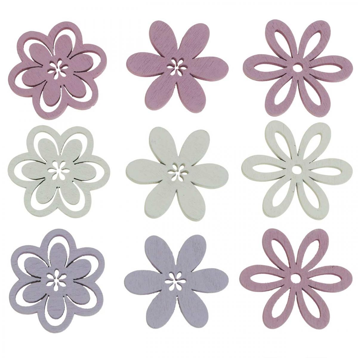 Tuotteen nimi: Puiset kukat hajallaan koristeet kukat purppura/vaaleanpunainen/valkoinen Ø3,5cm 48 kpl