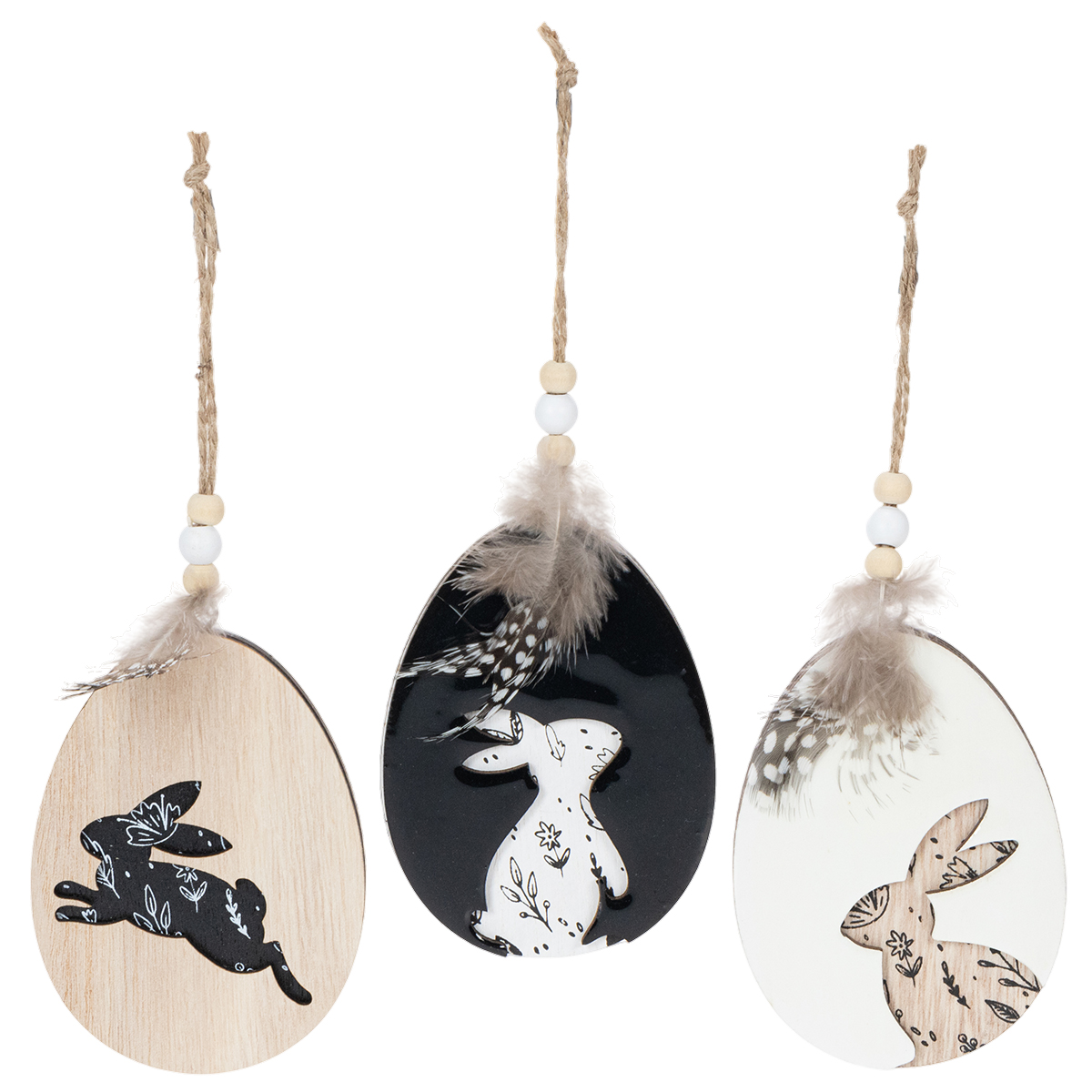 Puiset Pääsiäismunat Ripustettavaksi, Valkoiset ja Mustat, 10 cm, 6 Kappaletta