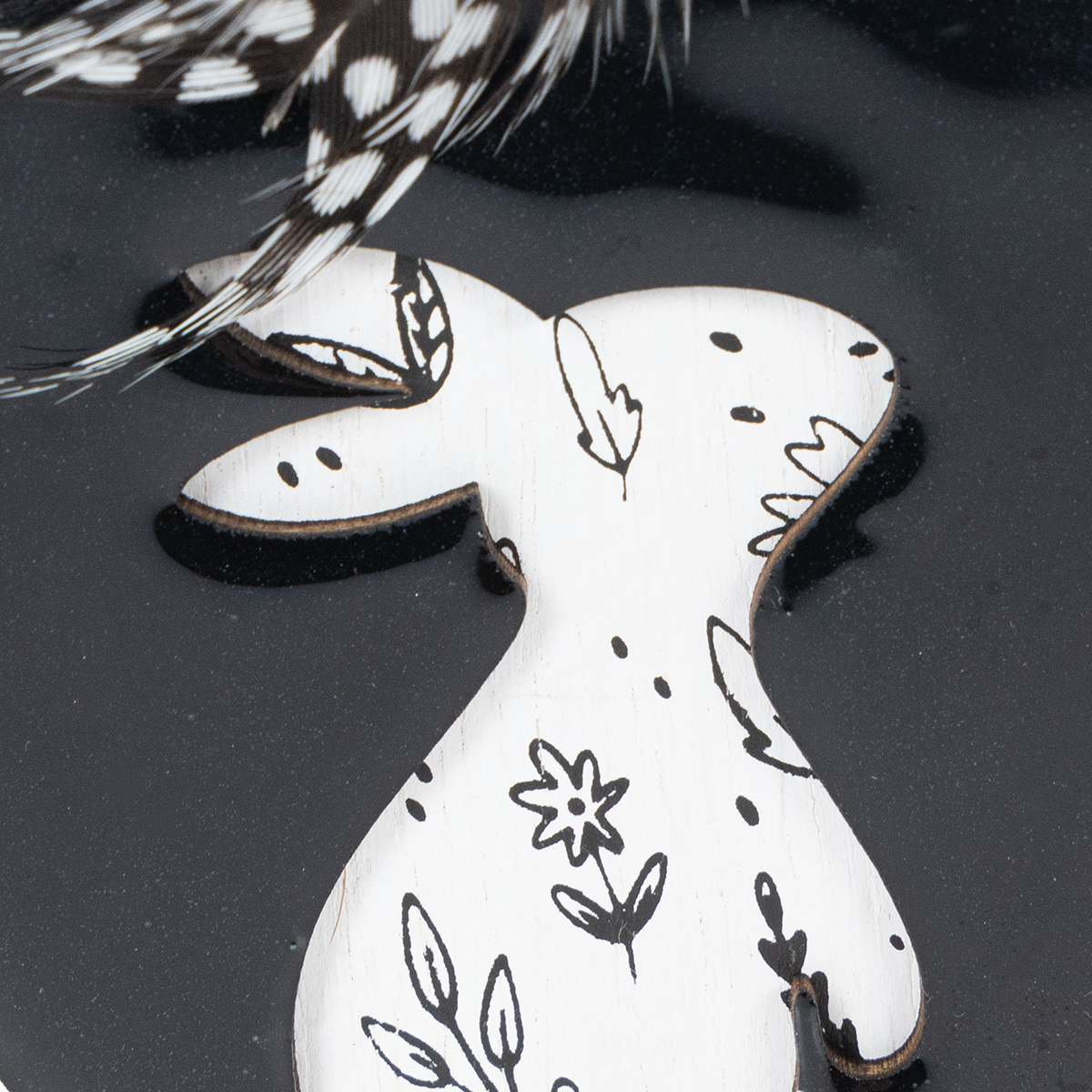 Kani munassa – trendi on todellinen katseenvangitsija! Pienet siluetit pupuina kukkakuvassa, pääsiäismunan muotoiset - näin tämä puusta tehty pääsiäiskoristelu esittelee itsensä. Korkeakiiltoinen pinta ja helmikanan höyhen antavat nostalgisille kauniille koristeripustimille tyylikkään lisän.