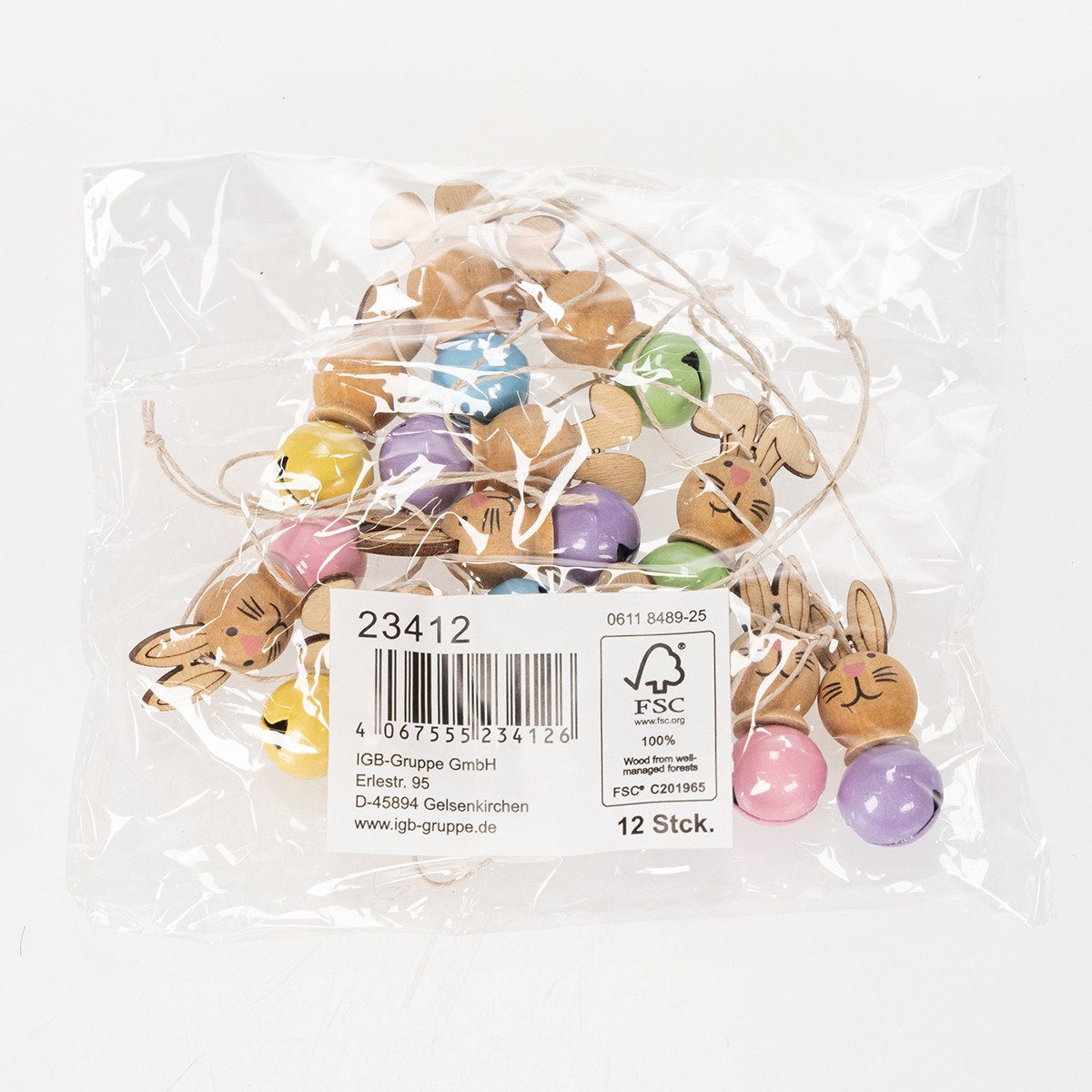 Pupukoristeelliset riipukset yhdistävät viehättävän muotoilun monipuolisiin koristelumahdollisuuksiin. Jokainen kahdestatoista riipuksesta on valmistettu korkealaatuisesta puusta ja on kooltaan noin 4 cm – ihanteellinen koko, joka sopii vaivattomasti mihin tahansa huoneeseen. Pupun kasvot on muotoiltu erittäin huolellisesti yksityiskohtia myöten: pieni nenä, iloiset silmät ja herkät linjat – yksinkertaisesti ihastuttavia! Ihastuttava lisä ovat pienet värilliset metallikellot, joita on saatavilla viidessä pastellisävyssä. Ne lisäävät leikkisän aksentin ja tuottavat pehmeät kellot pienimmästäkin liikkeestä.