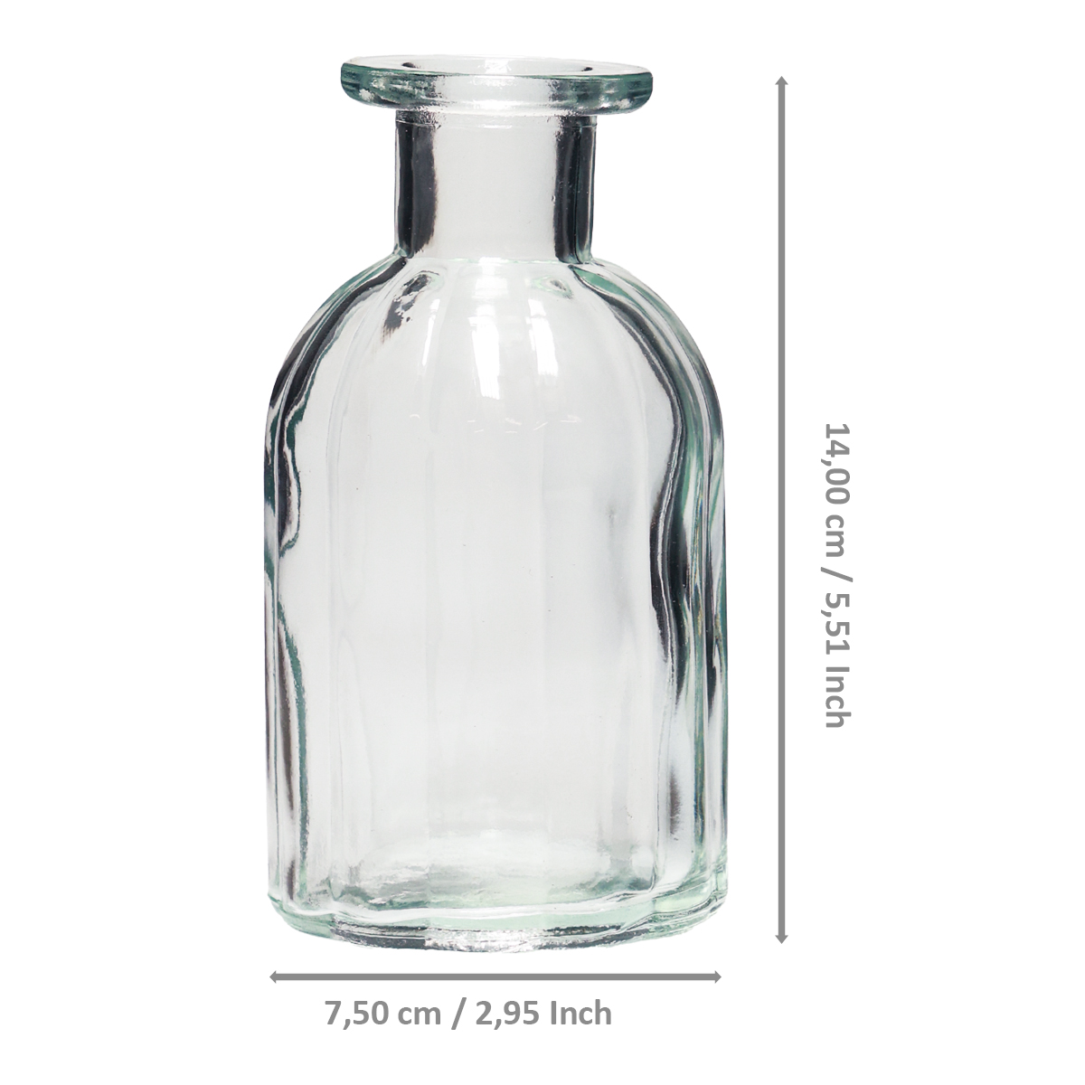 Liikkeestämme löydät pullomaljakon myös isompana. Pieni lasimaljakkokoriste on noin 14 senttimetriä korkea ja halkaisija noin 7,5 senttimetriä.