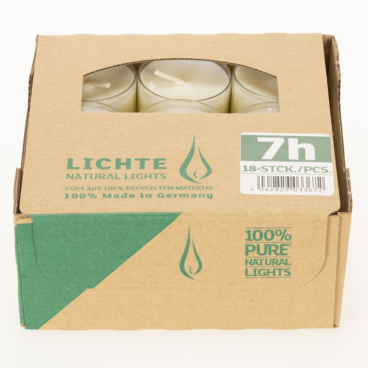 PURE Nature Lights -tuikkukynttilät, rypsivahaa, luonnollinen, paloaika 7 tuntia, 18 kpl