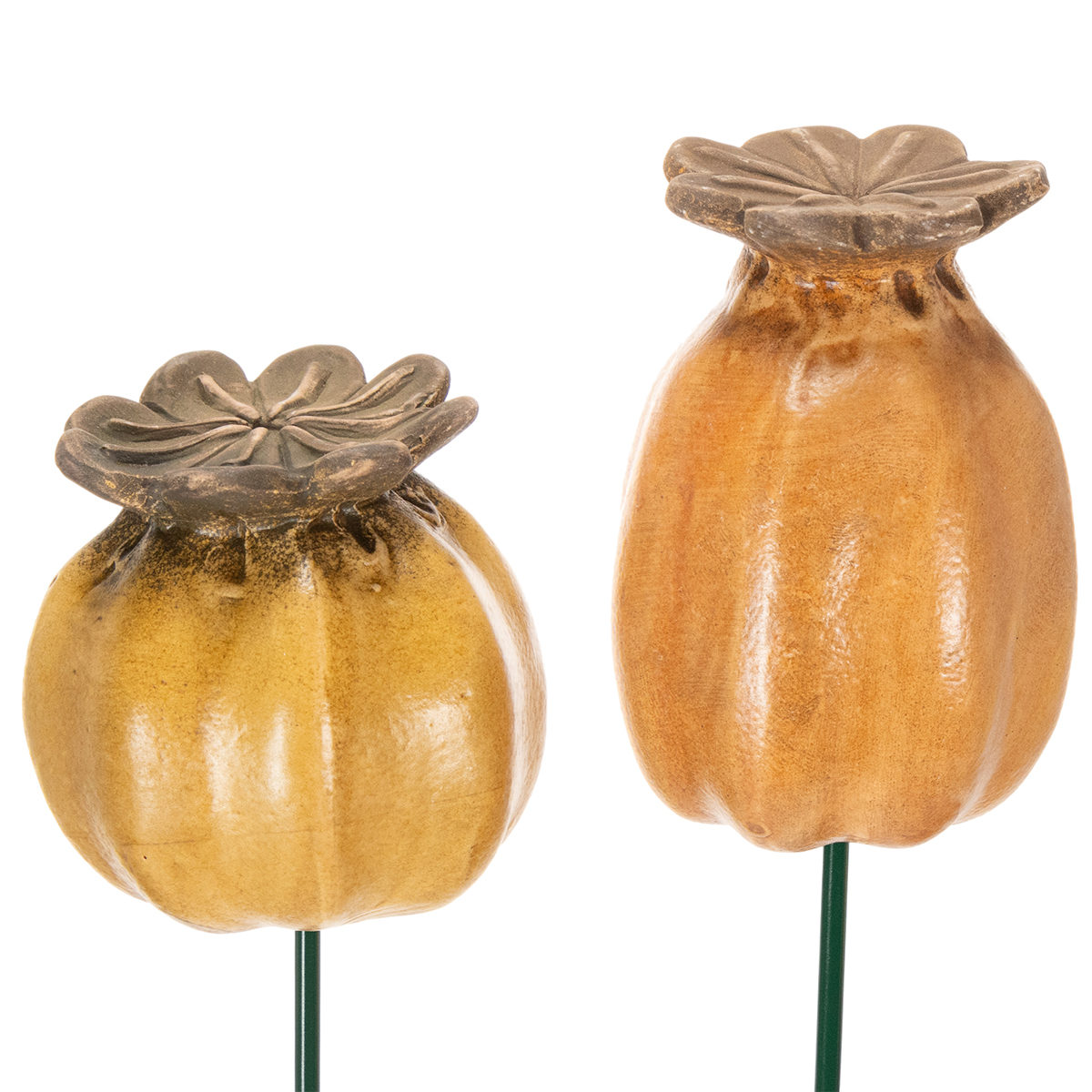 Puutarha on paikka rentoutumiseen ja rauhoittumiseen, ja oikeilla yksityiskohdilla voi olla ratkaiseva rooli. Unikonsiemenpäillä varustetut puutarhakeppimme ovat todellinen katseenvangitsija ulkotilassasi. Klassinen unikonsiemenpään muoto yhdistettynä lämpimän ruskeaan keramiikkaan ja 7 cm:n halkaisijaan sulautuu harmonisesti mihin tahansa vihreään keitaaseen. Kahden kepin sarja sopii erityisesti silloin, kun haluat lisätä tyylikkäitä kohokohtia kukkapenkkeihin tai ruukkuihin.