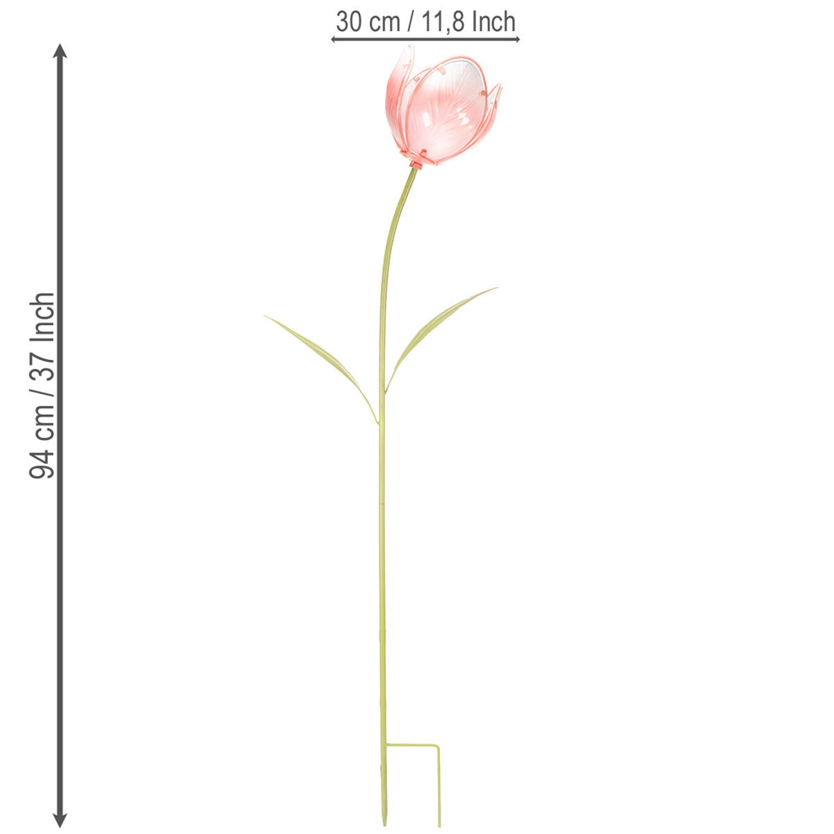 Etsitkö viehättävää katseenvangitsijaa kukkapenkkiisi tai terassillesi? Tutustu kauniiseen tulppaanin muotoiseen puutarhakeppiimme! 94 cm korkea ja suurella vaaleanpunaisella lasikukalla varustettu puutarhakeppi tuo välittömästi eleganssia ja väriä ulkotiloihin. Täydellinen tuomaan eloa kukkapenkkeihin tai ripauksen väriä parvekepuutarhoihin! Olipa tyylisi sitten maalaismainen, moderni tai romanttinen – tämä koristekukka sopii minne tahansa. Käsintehty ulkonäkö ja korkealaatuisista materiaaleista valmistettu rakenne tekevät siitä paitsi säänkestävän myös pitkäikäisen lisän, joka antaa puutarhallesi erityistä ilmettä. Kaipaatko pientä tyylinmuutosta puutarhaasi? Kokeile!