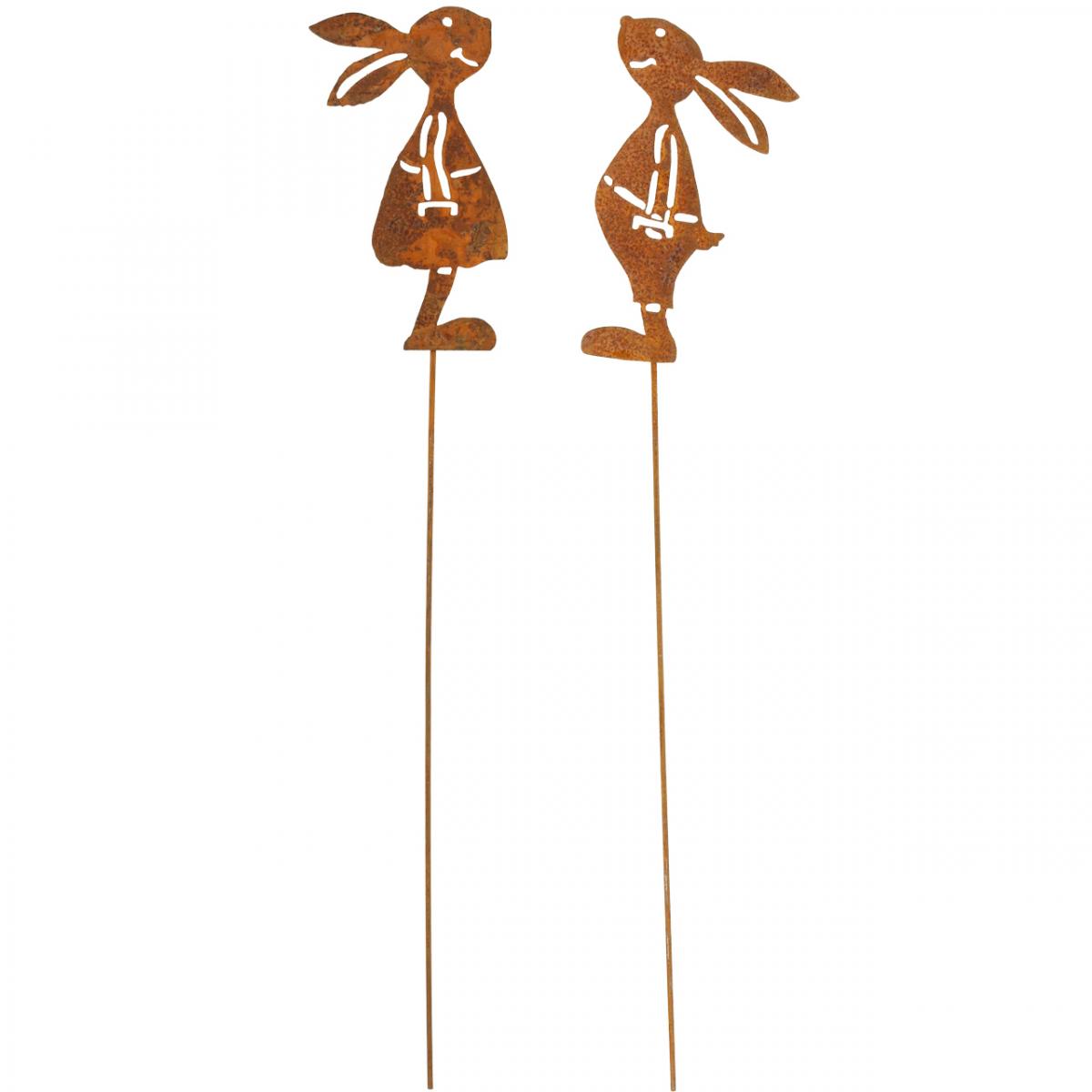 Puutarhan koristelu ruosteinen kani koristetulppa pääsiäinen 8×16cm 2kpl (1pari)