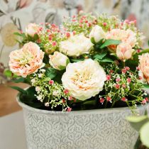 Siten voit virkistää pöydän koristelua esimerkiksi keväällä ihanan helposti jakelemalla kukkia maljakoissa pöydällä. Lisäksi kukan pää voidaan myös irrottaa vaivattomasti, jolloin kukka voidaan helposti liittää floristisiin töihin, kuten asetelmiin ja seppeleisiin. Yhdistä lehtivihreän kanssa. Etuna oikeisiin kukkiin verrattuna on se, että sinun ei tarvitse huolehtia hoidosta tai kuihtumisesta, ja voit kokea ja nauttia ranunculuksen kauneudesta vuosien ajan.