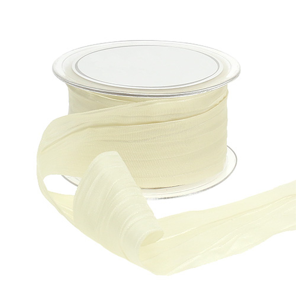 Tämä erinomainen Crash-nauha kermanvärisenä on noin 50 millimetriä leveä ja noin 20 metriä pitkä, ja se on kelattu tukevalle muovikelalle. Laadukas työstö takaa, että nautit luomistasi ruseteista ja koristeista pitkään.